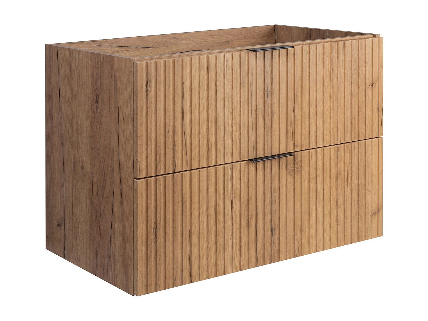 Ensemble de salle de bain : meuble avec tiroirs et meuble avec portes 57×46×120 cm, couleur : Chêne Craft, poignée noire