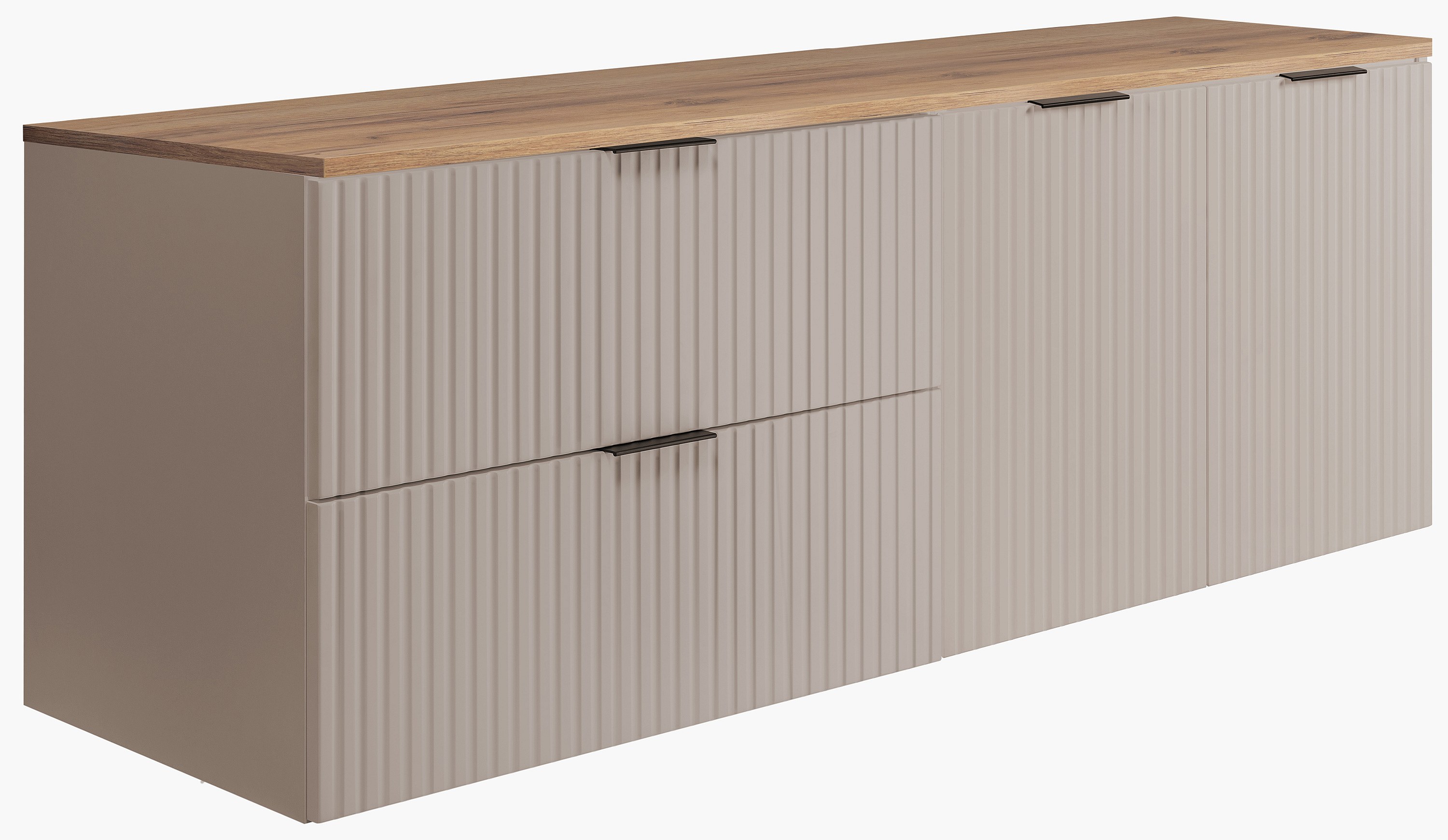 Ensemble de salle de bain : meuble avec tiroirs et meuble avec portes 57×46×160 cm, couleur : cachemire, poignée noire