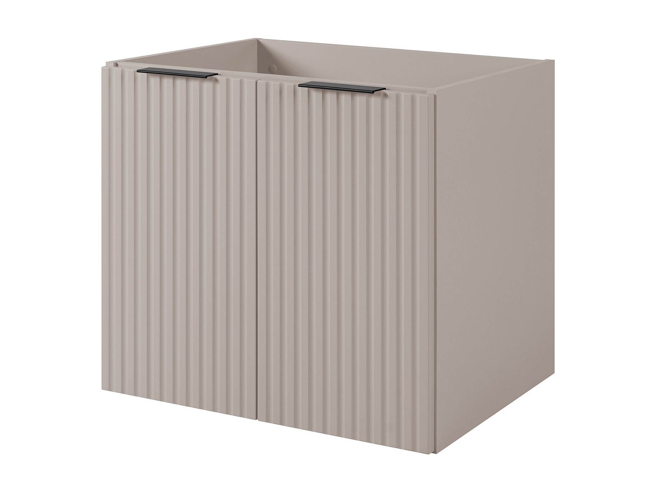 Ensemble de salle de bain : meuble avec tiroirs et meuble avec portes 57×46×120 cm, couleur : cachemire, poignée noire