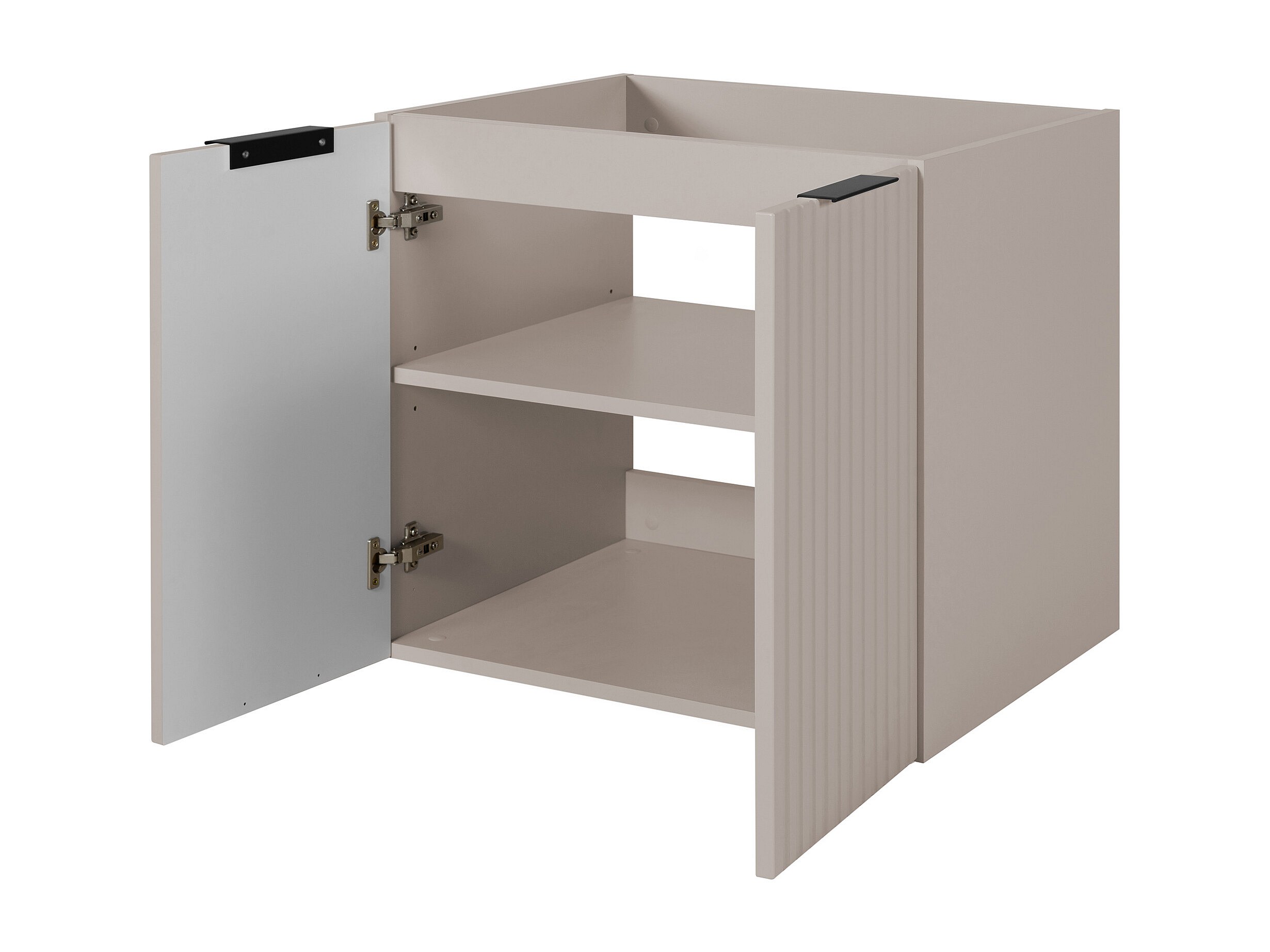 Ensemble de salle de bain : meuble avec tiroirs et meuble avec portes 57×46×120 cm, couleur : cachemire, poignée noire