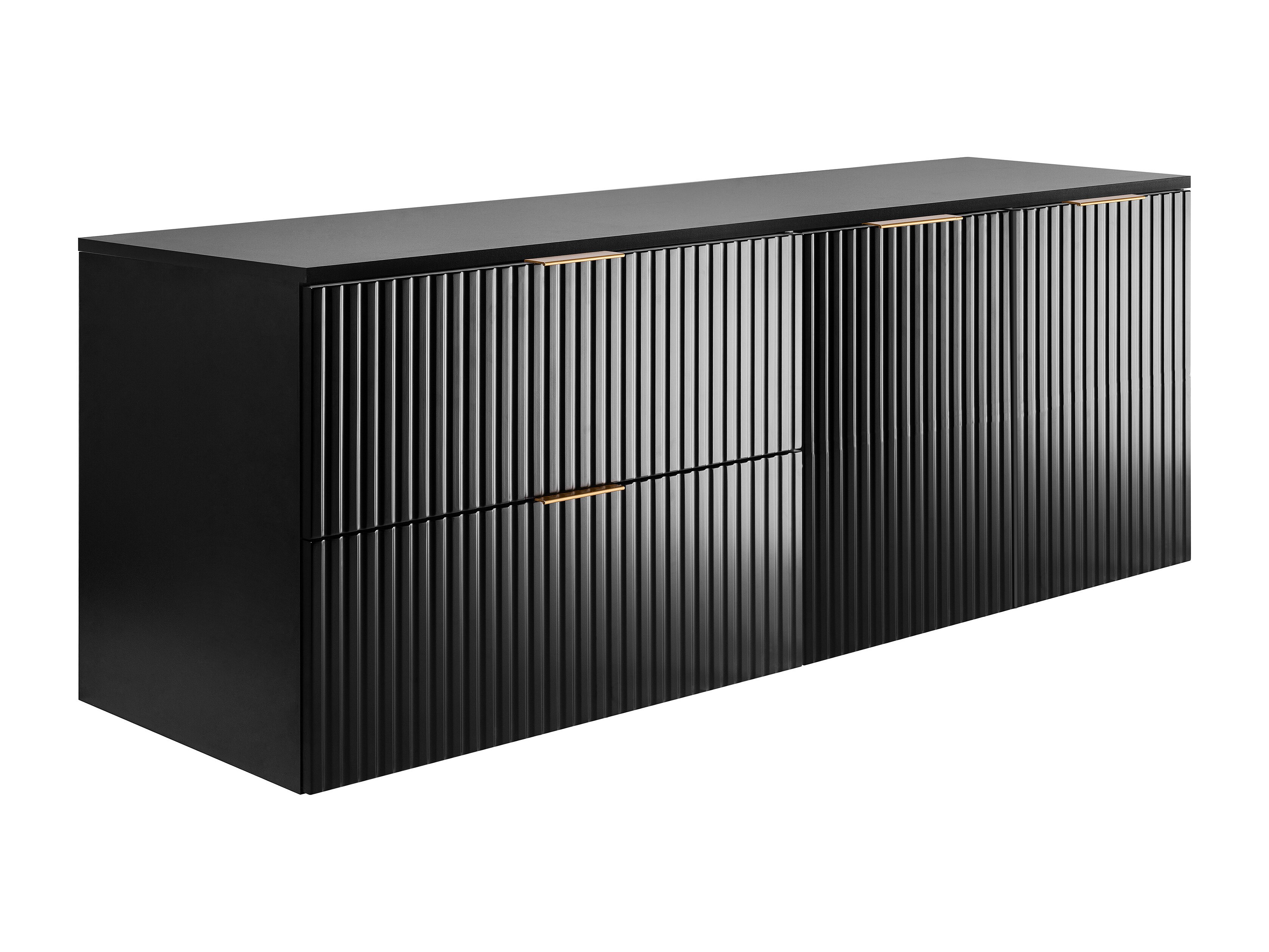 Ensemble de salle de bain : meuble avec tiroirs et meuble avec portes 57×46×160 cm, couleur : noir, poignée dorée