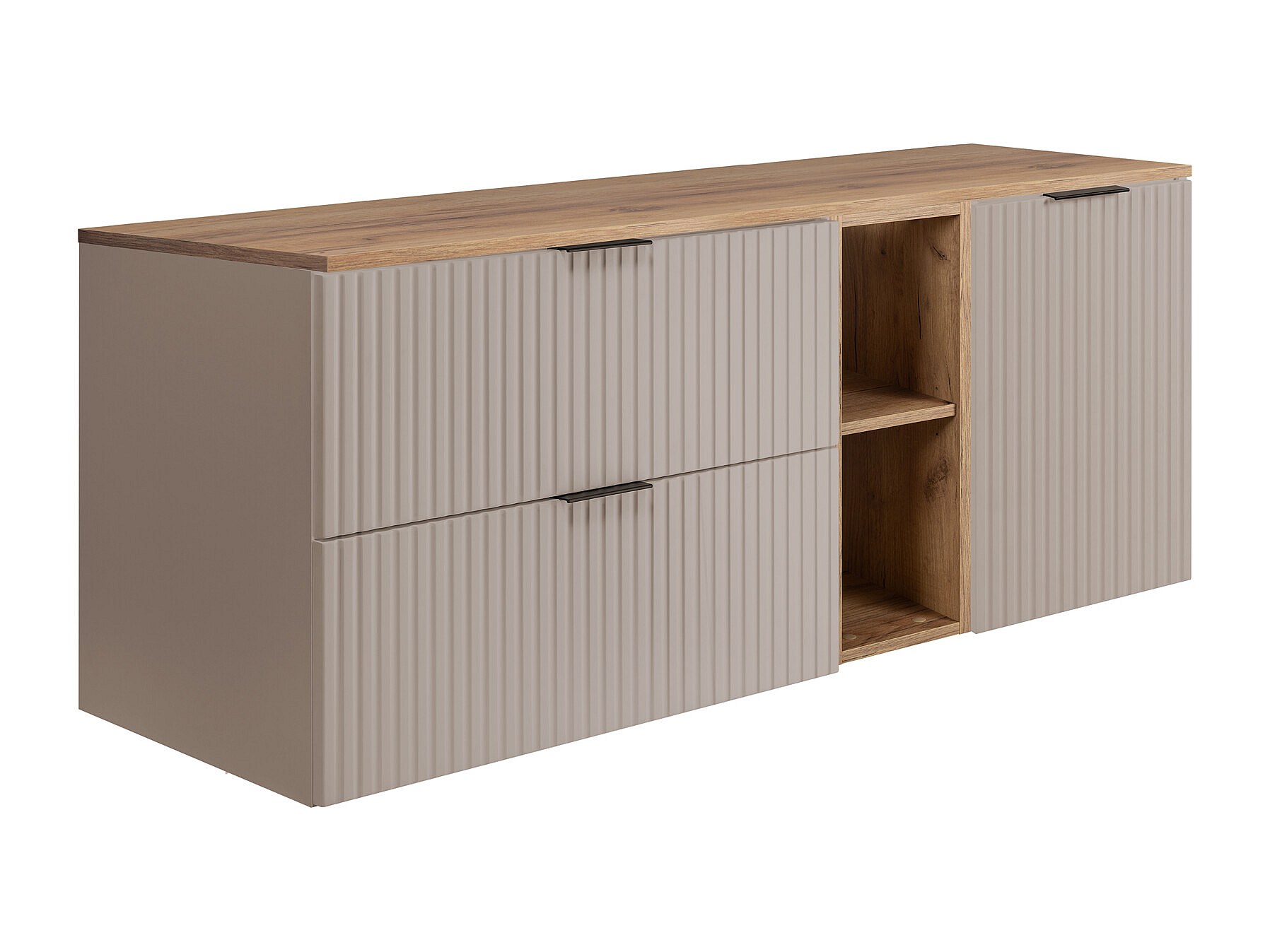 Ensemble de salle de bain : meuble avec tiroirs et meuble avec portes 57×46×120 cm, couleur : cachemire / chêne Craft, poignée noire