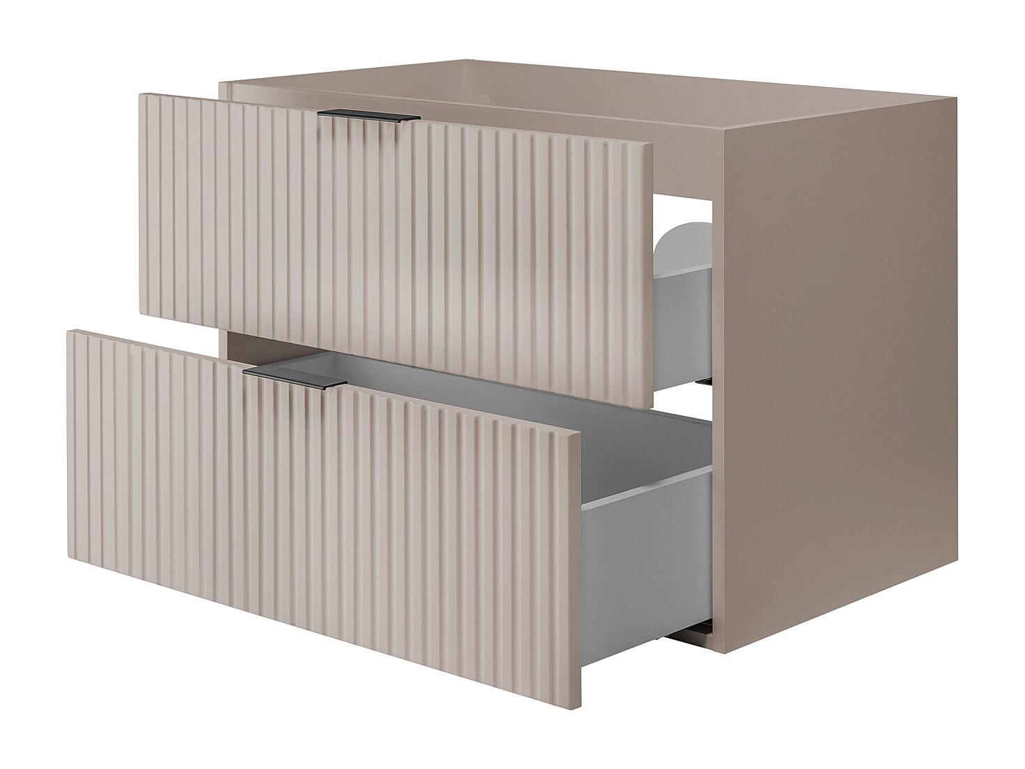 Ensemble de salle de bain : meuble avec tiroirs et meuble avec portes 57×46×120 cm, couleur : cachemire, poignée noire