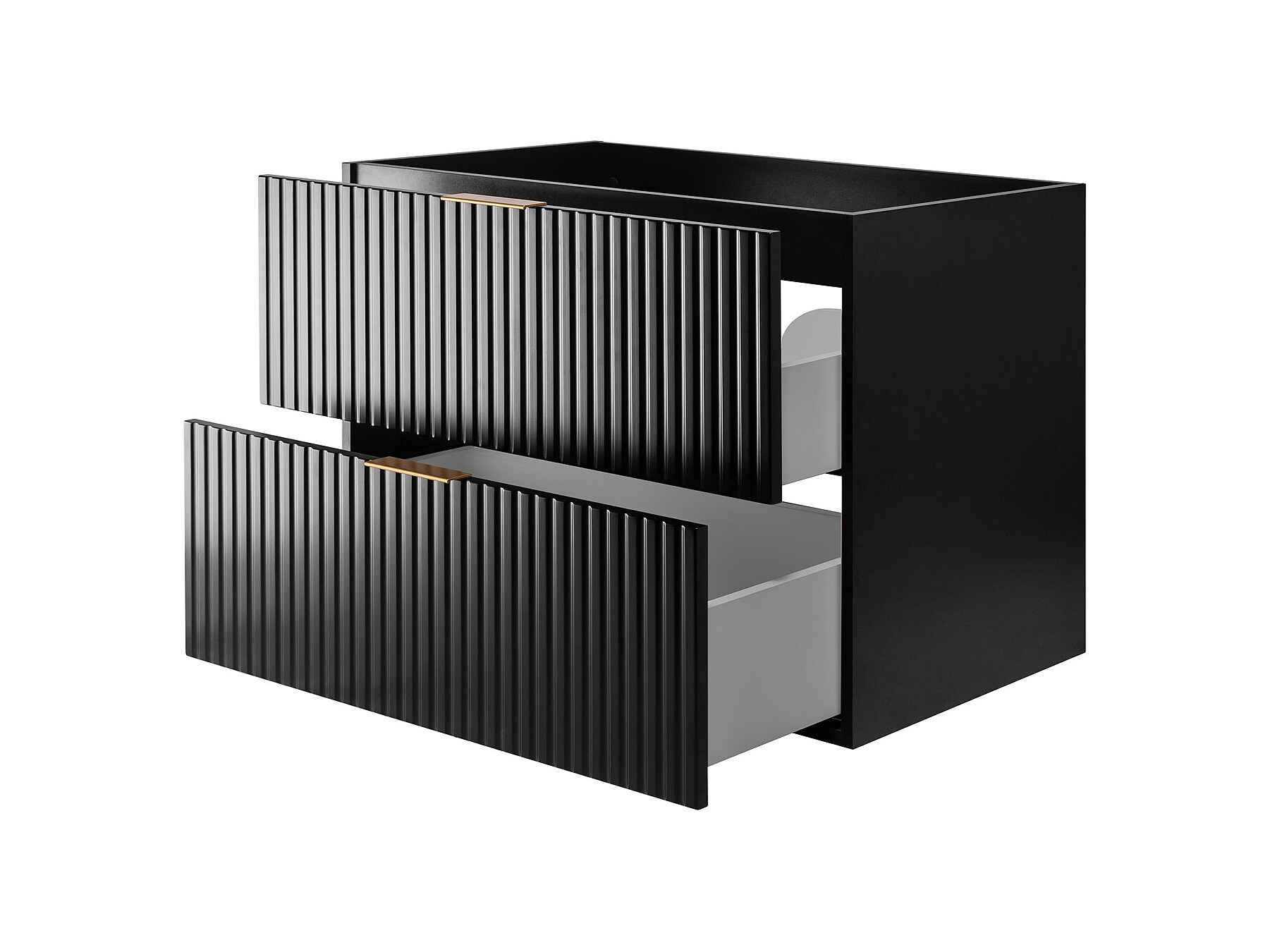 Ensemble de salle de bain : meuble avec tiroirs et meuble avec portes 57×46×120 cm, couleur : noir, poignée dorée