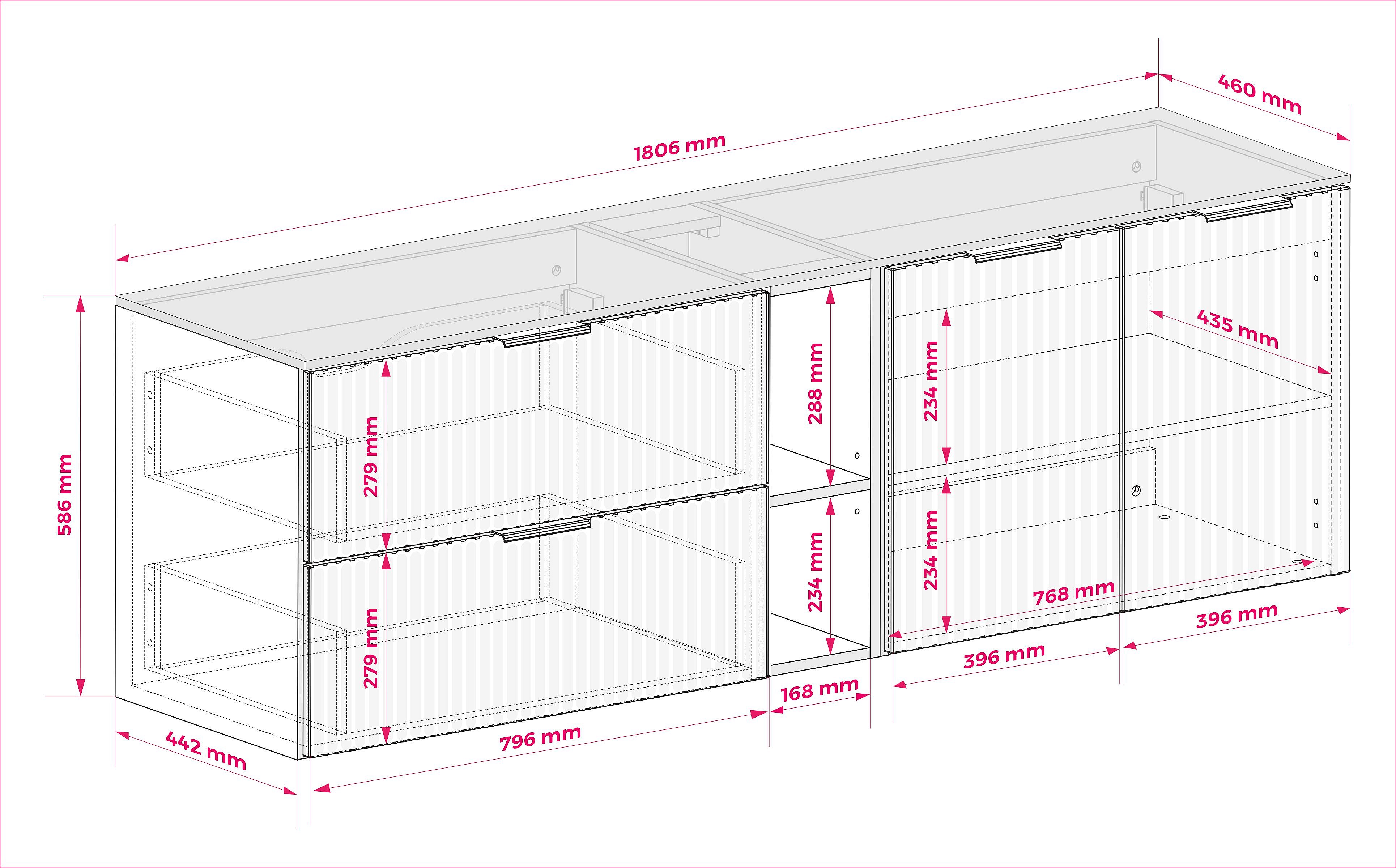 Bathroom furniture washbasin Budasi Honey oak H. 150 x W. 177 x D. 46 cm