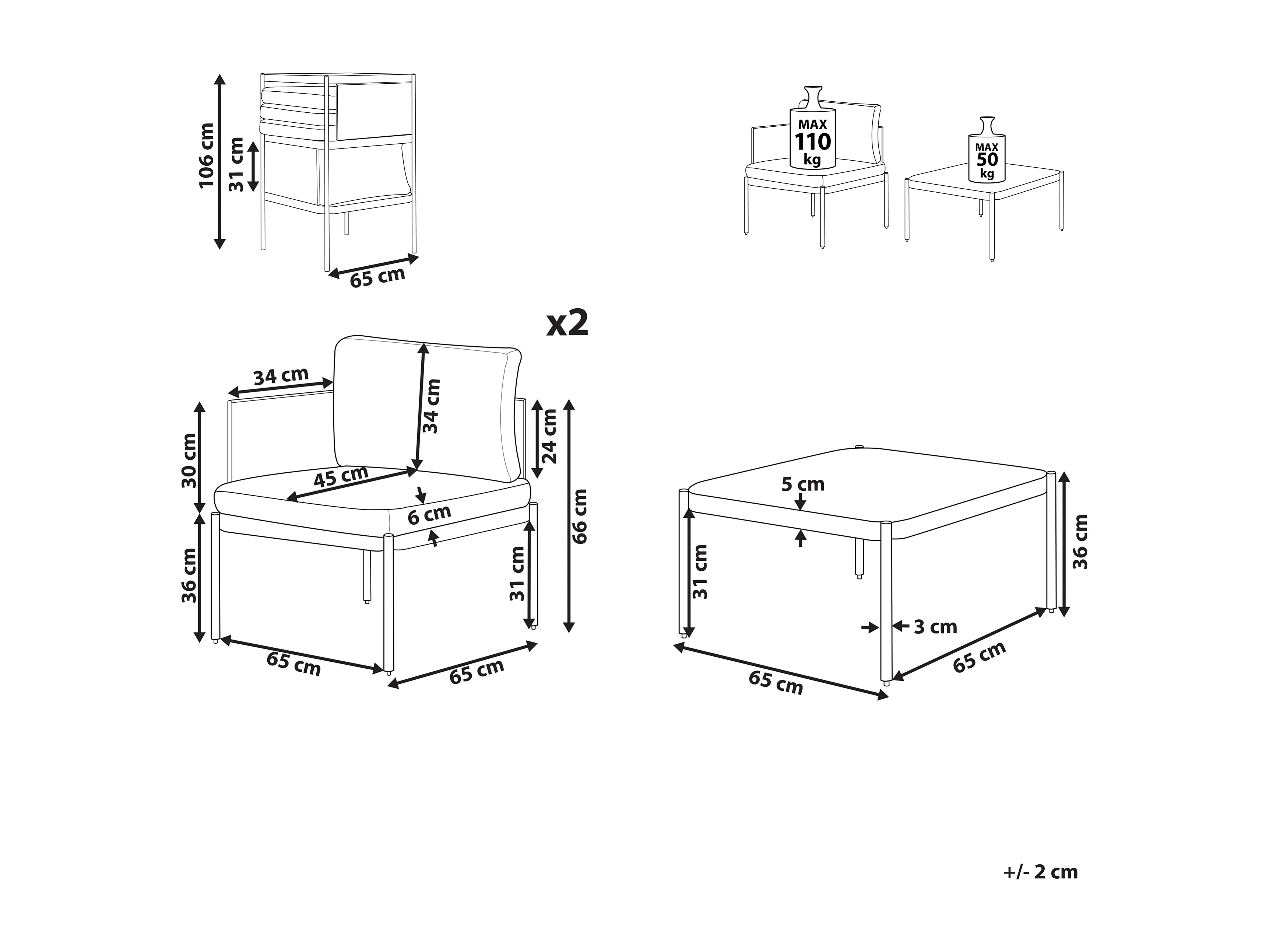 Ensemble de salon de jardin avec table 2 places TERRACINA Métal Gris clair