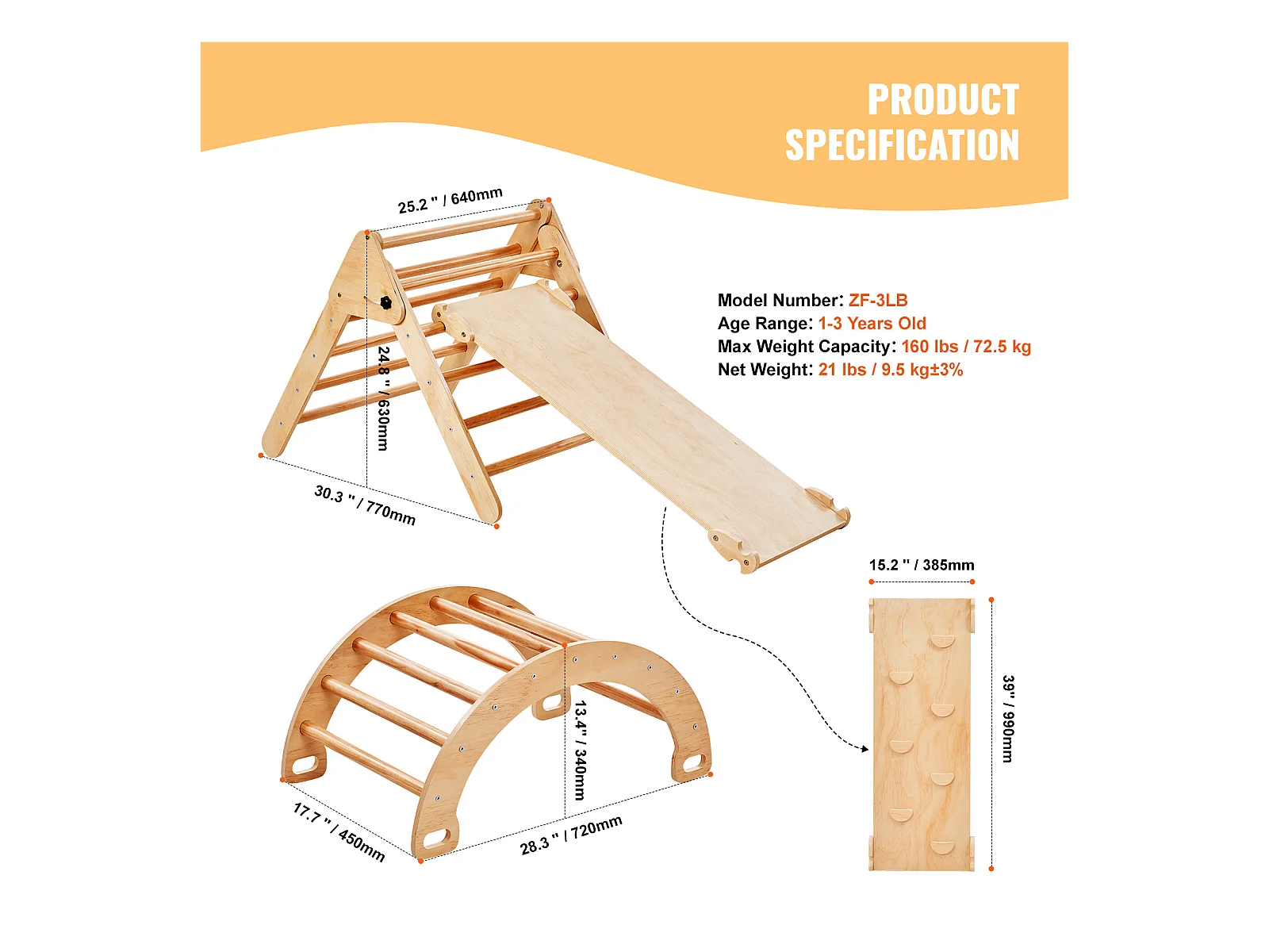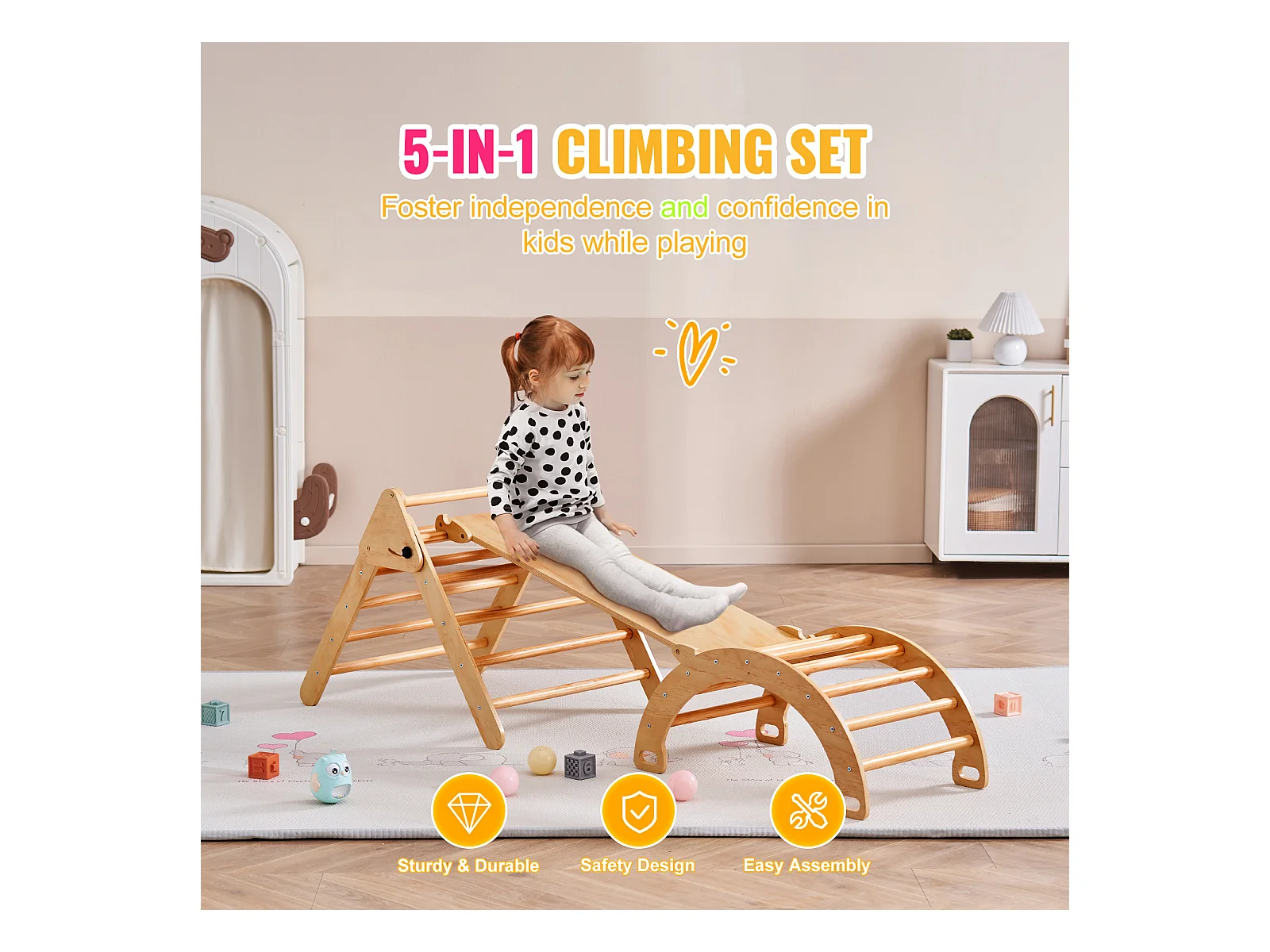 Ensemble de Triangles SucceBuy Pikler 5 En 1 de SucceBuy , Jouets D'escalade Montessori pour Tout-petits, Bois