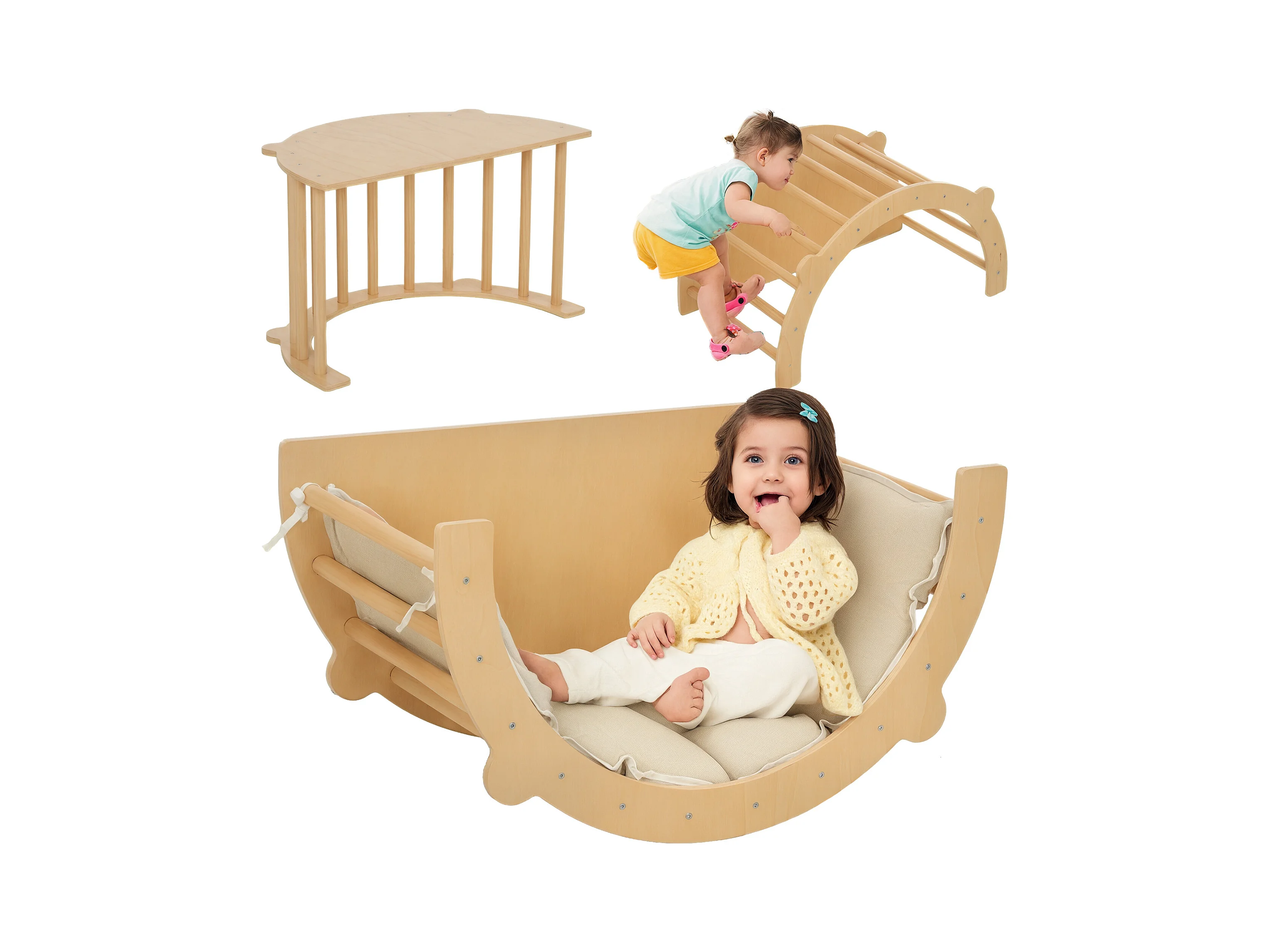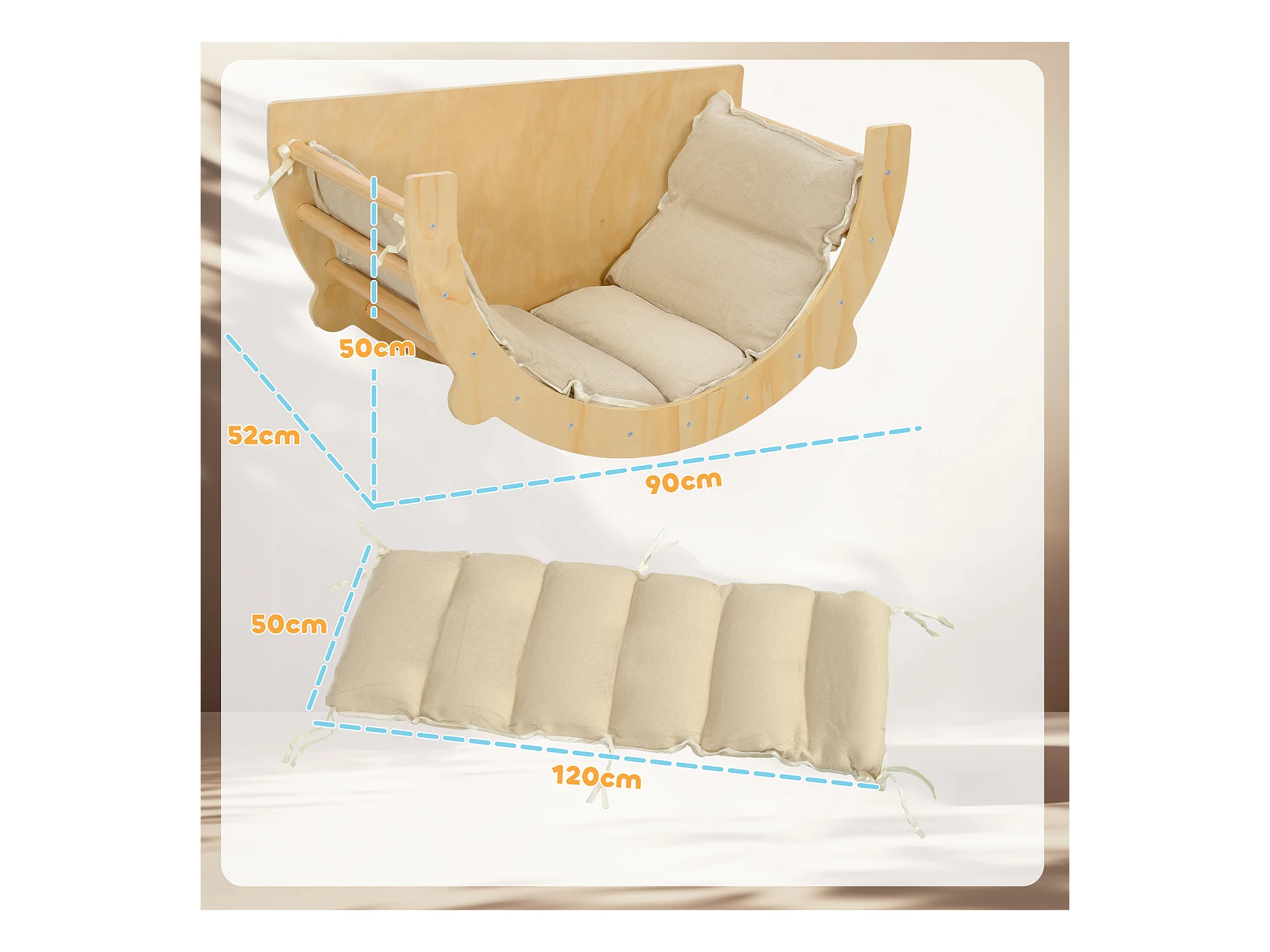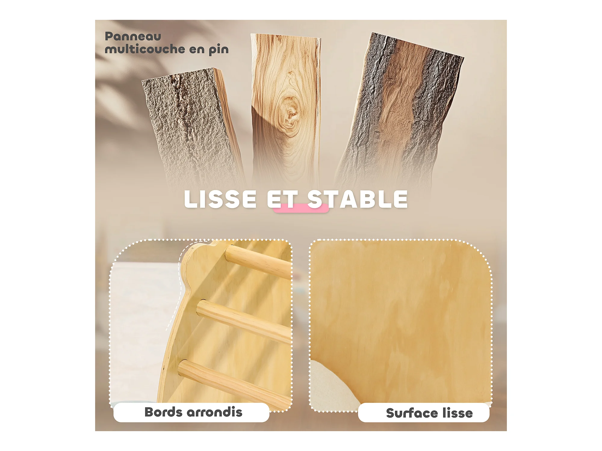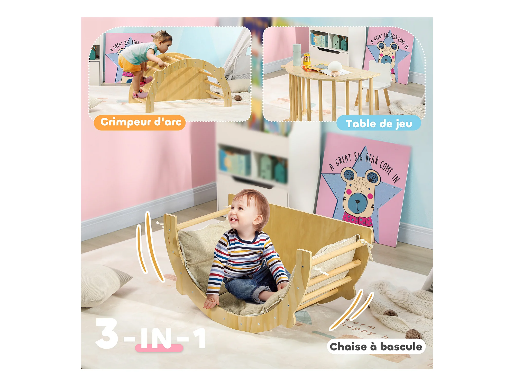 Ensemble d'escalade en bois 3 en 1 - arche, bascule, table - coussin inclus - panneaux bois pin