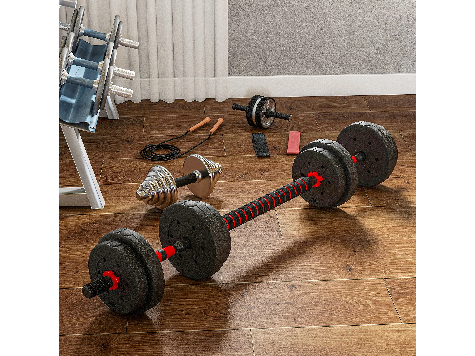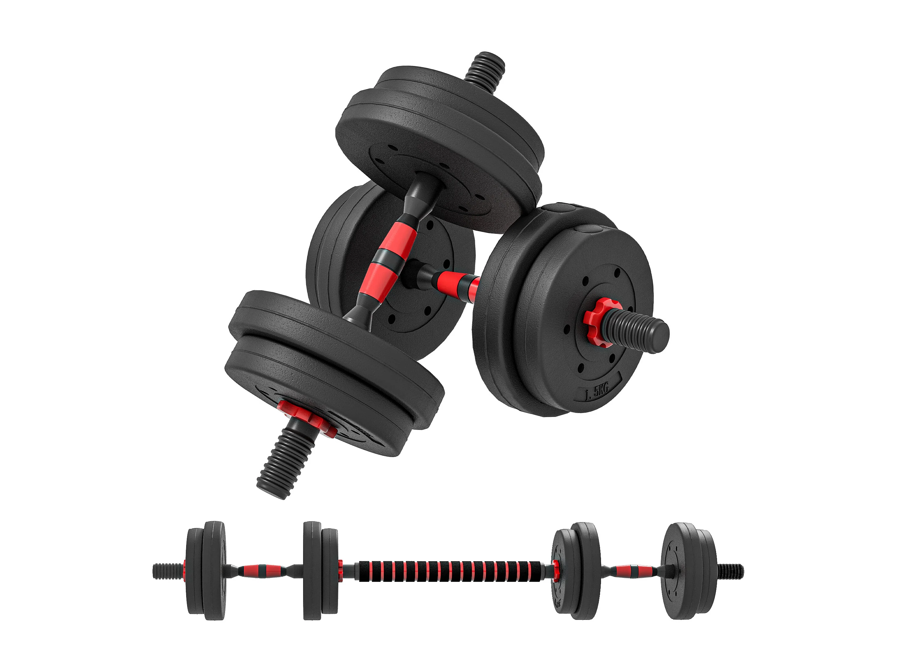 Ensemble d'haltères courtes total 15 Kg - barres incluses - entraînement musculaire & haltérophilie - acier HDPE noir rouge