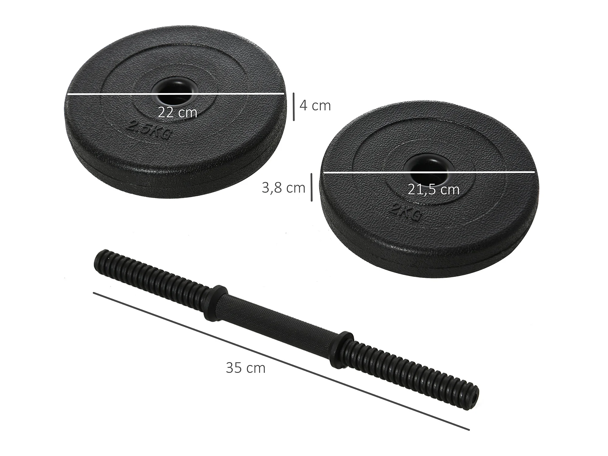 Ensemble d'haltères courtes total 20 Kg - barres incluses - entraînement musculaire & haltérophilie - acier HDPE noir