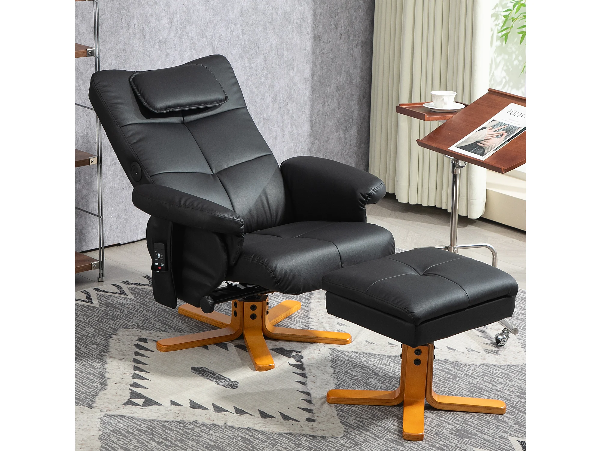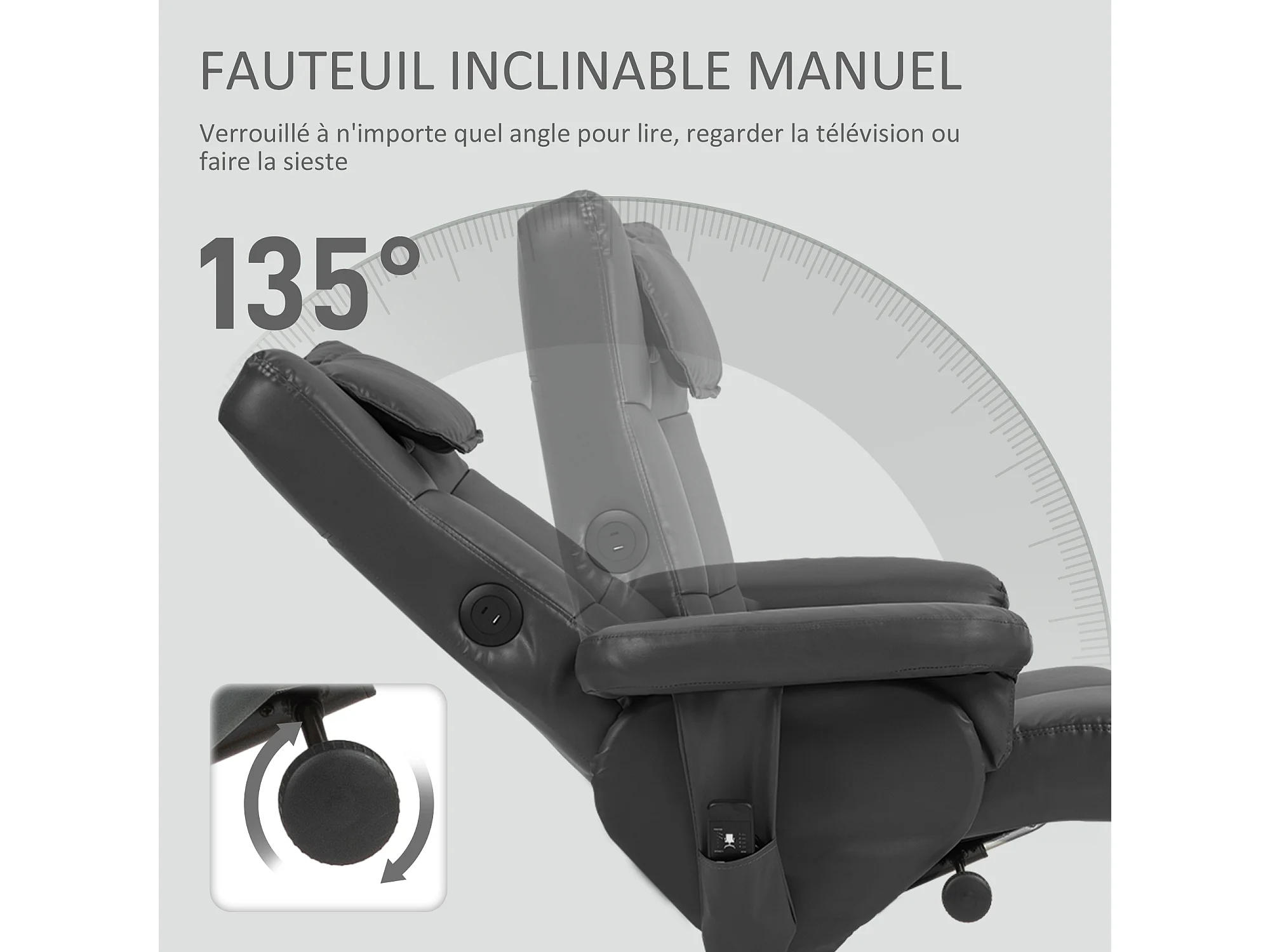 Ensemble fauteuil massant repose-pieds design Chesterfield - inclinable - coffre - tétière - noir