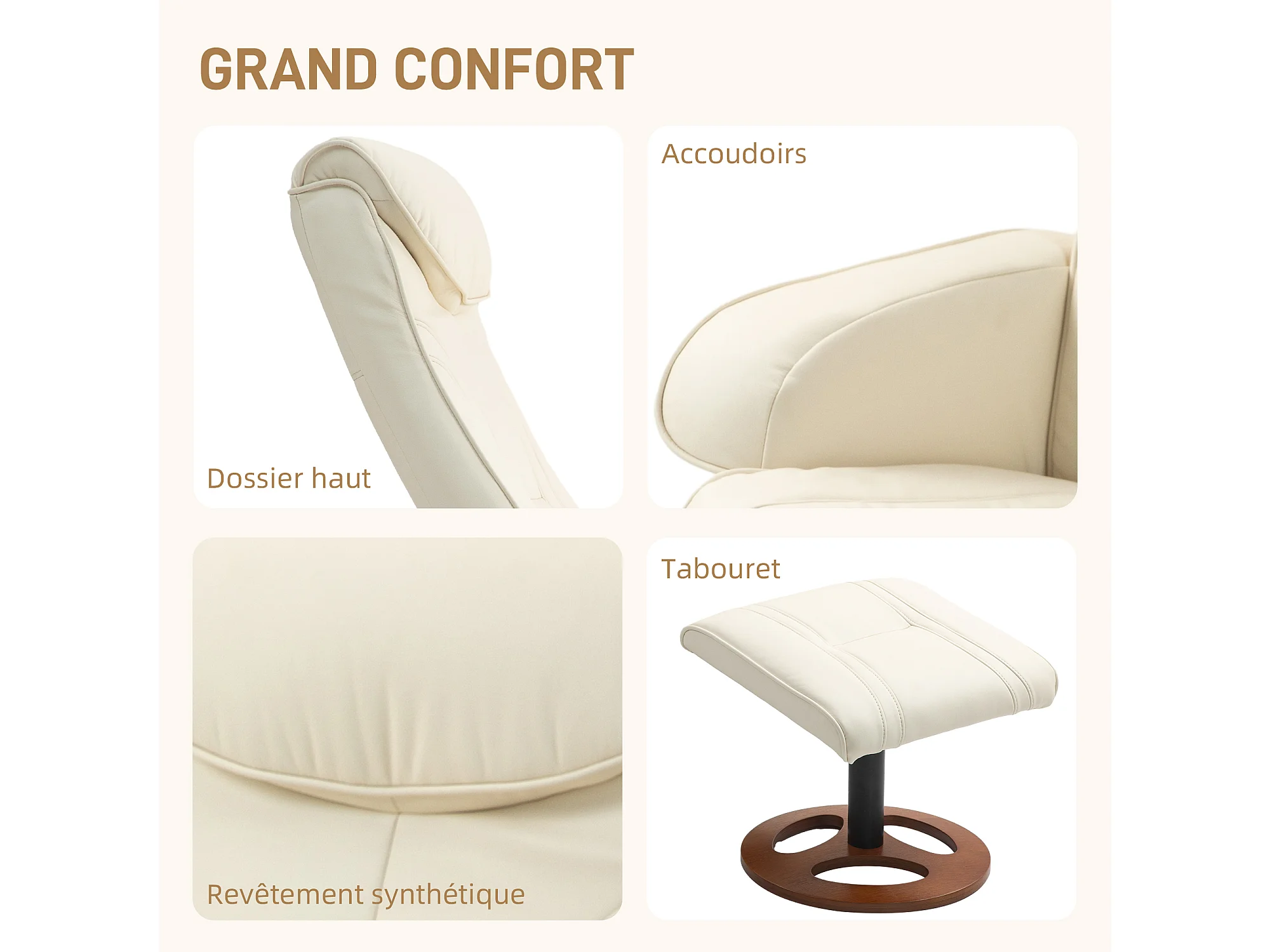 Fauteuil relax inclinable pivotant style contemporain avec repose-pied revêtement synthétique beige