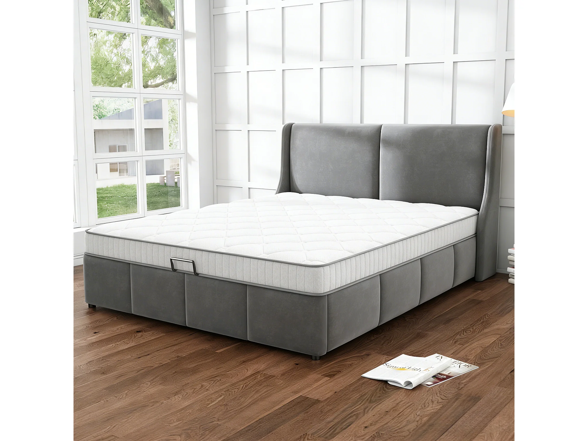 Ensemble Lit Coffre avec Matelas CHITA 140x200cm - Soutien Medium 7 Zones,épaisseur 20 cm - Rangement Intégré