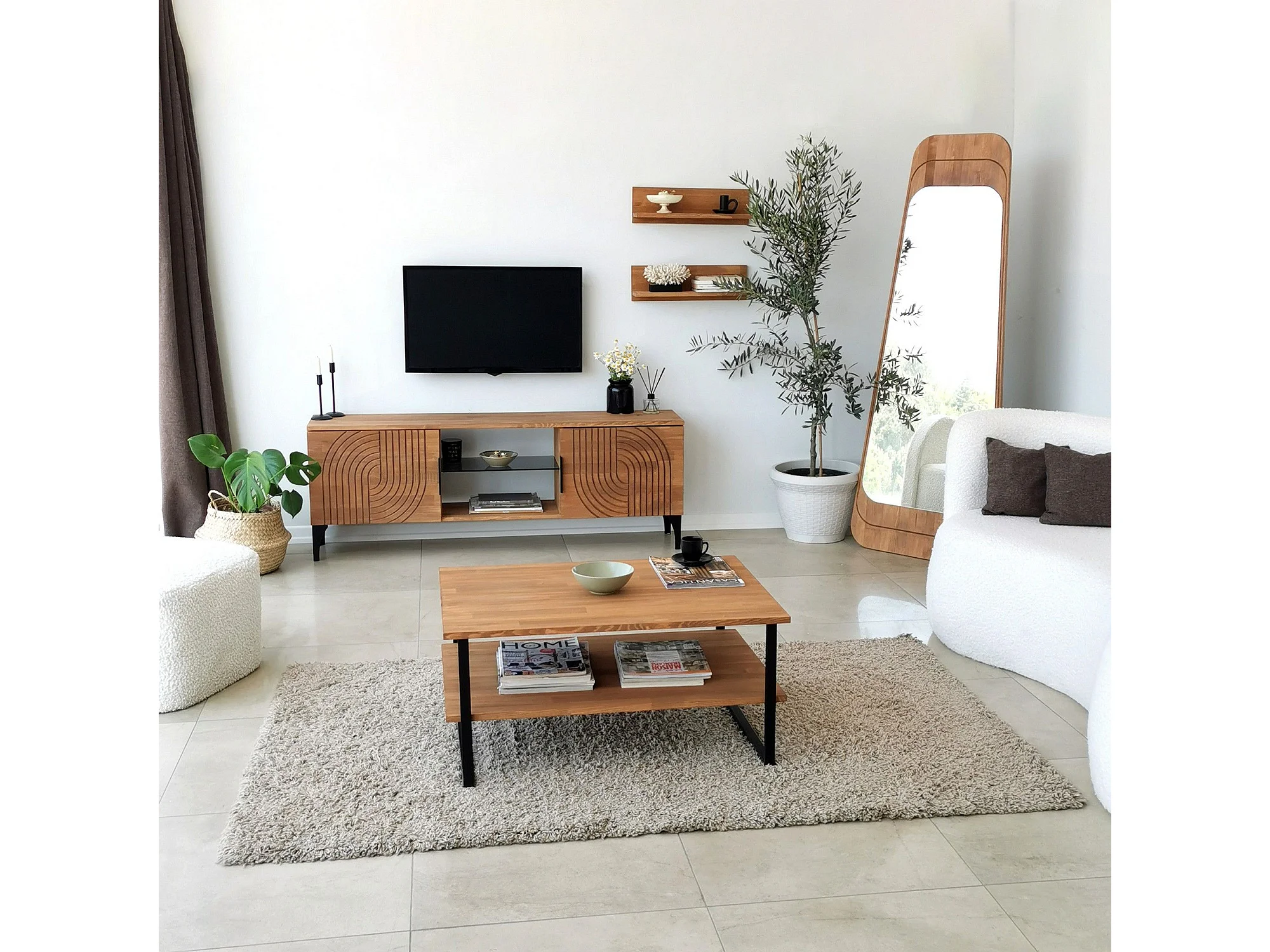 Ensemble meuble TV, étagère et table basse Forces Motif Arabesque Chêne clair