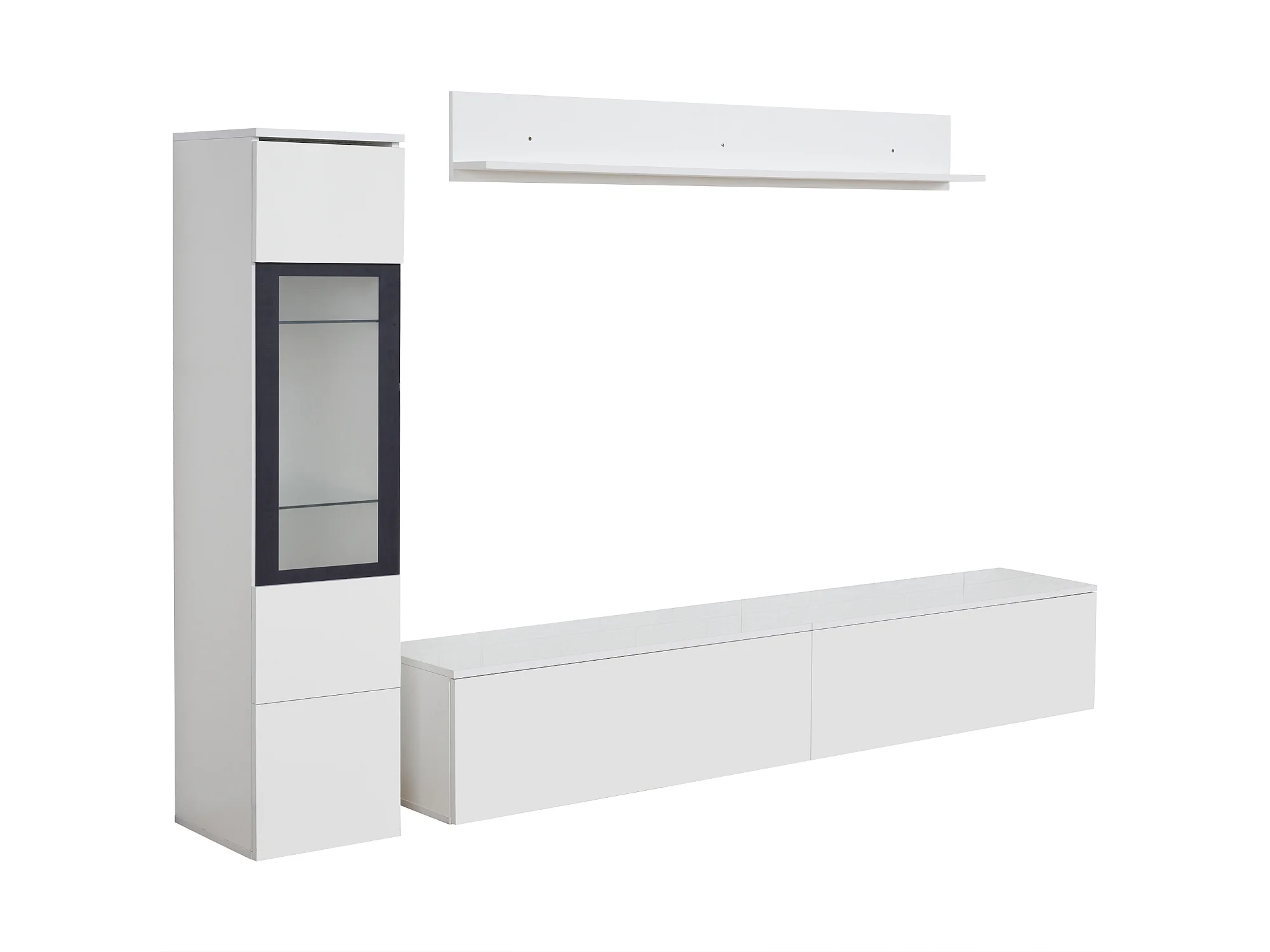 Ensemble meuble TV suspendu LED 180x33x30 cm avec 1 meuble TV 1 vitrine 1 support mural en bois - blanc