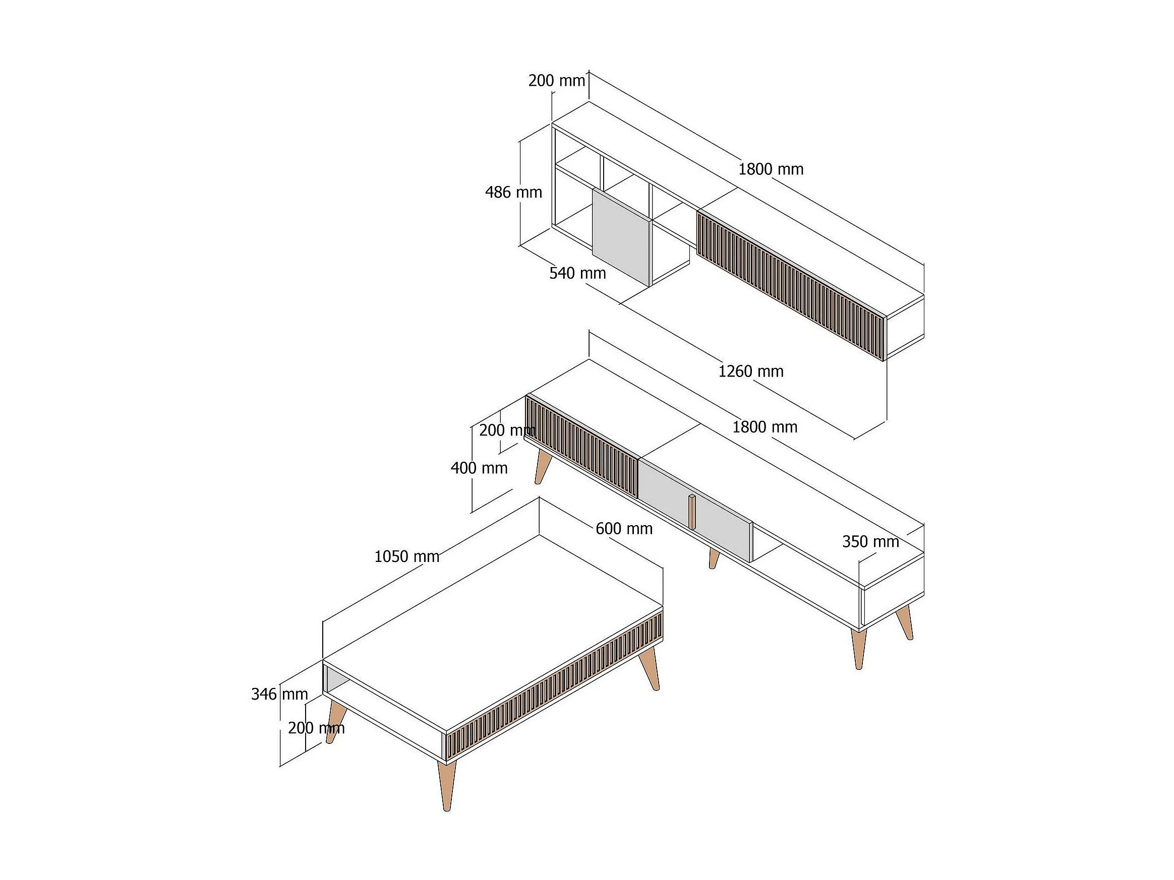 Ensemble meuble Tv, table basse et étagère murale design Ribera Bois clair et Blanc
