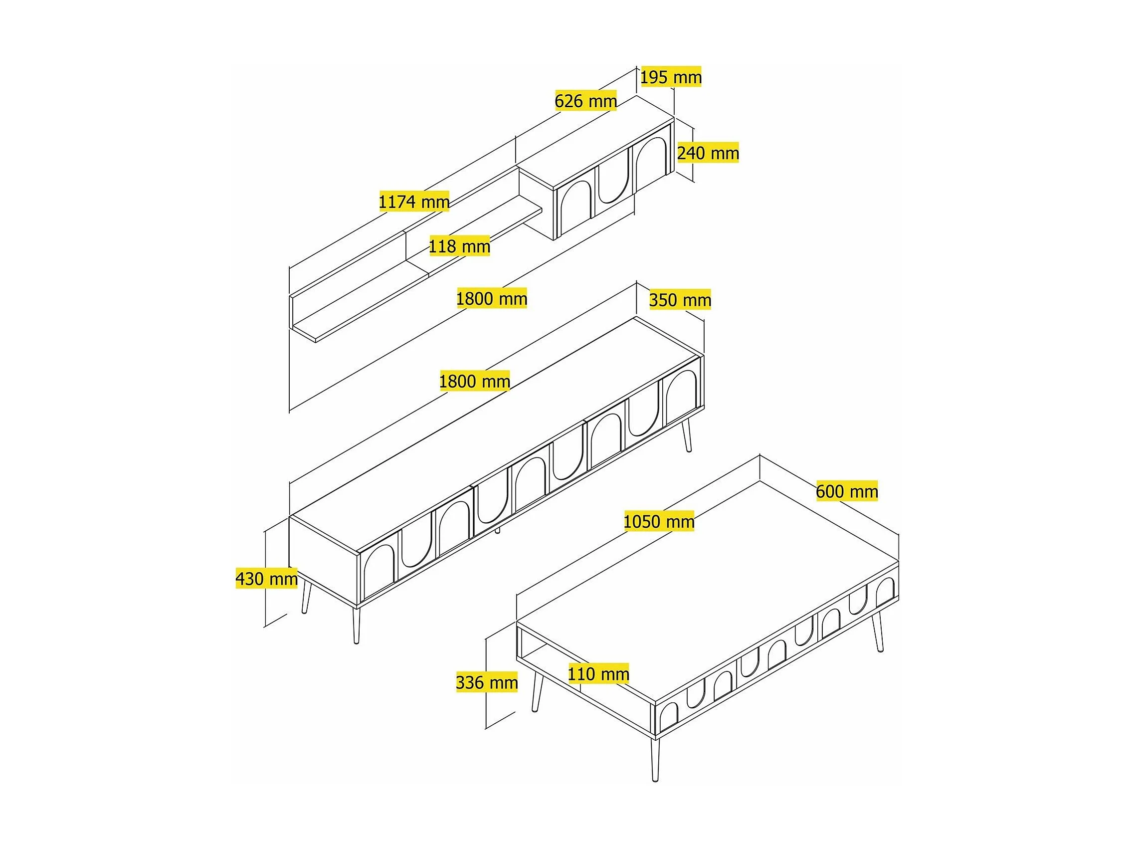 Ensemble meubles de salons style minimaliste Lyana 3 pièces Blanc et Bois clair