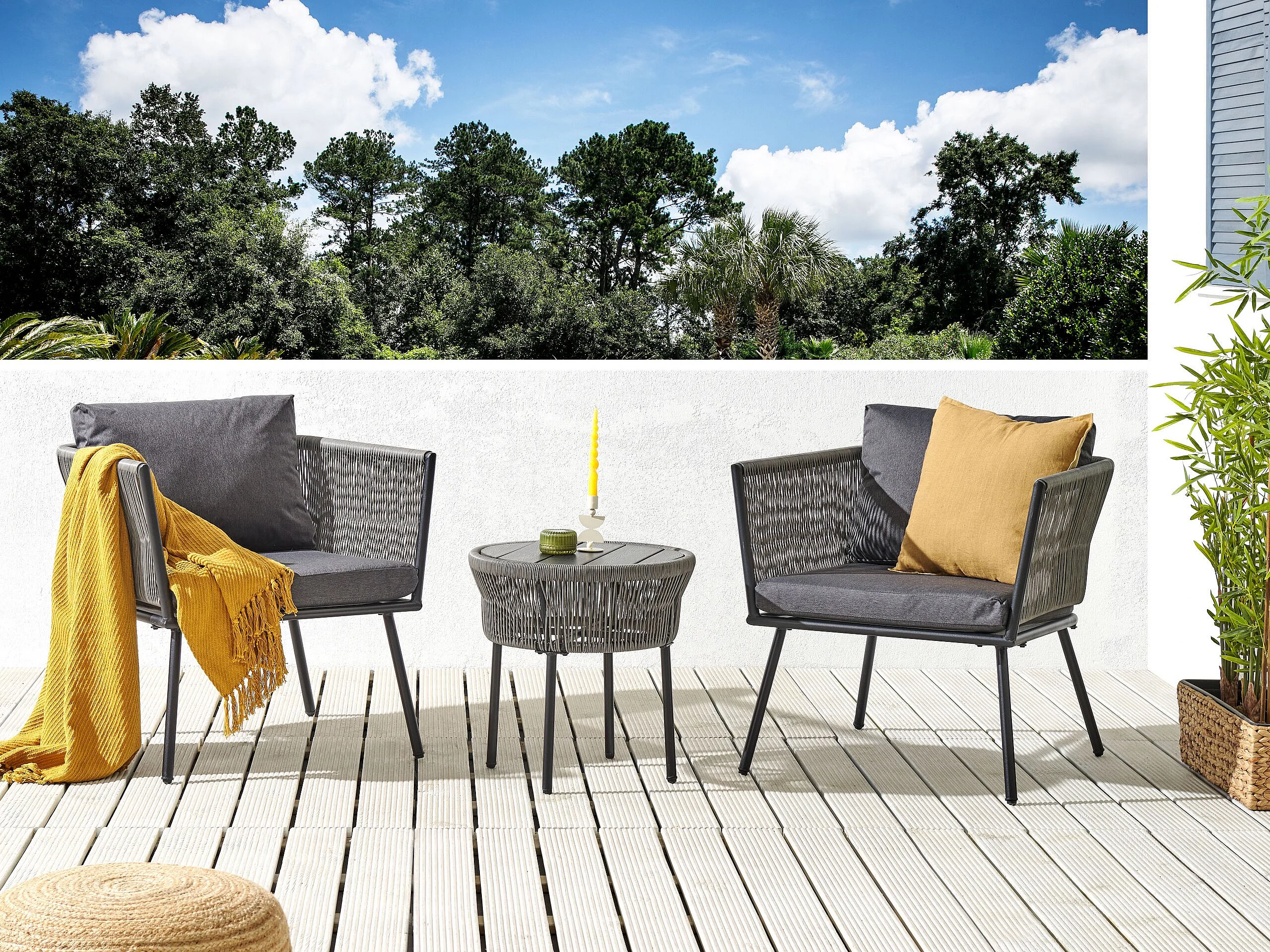 Ensemble bistrot avec coussins GARGANO Polyrotin Gris