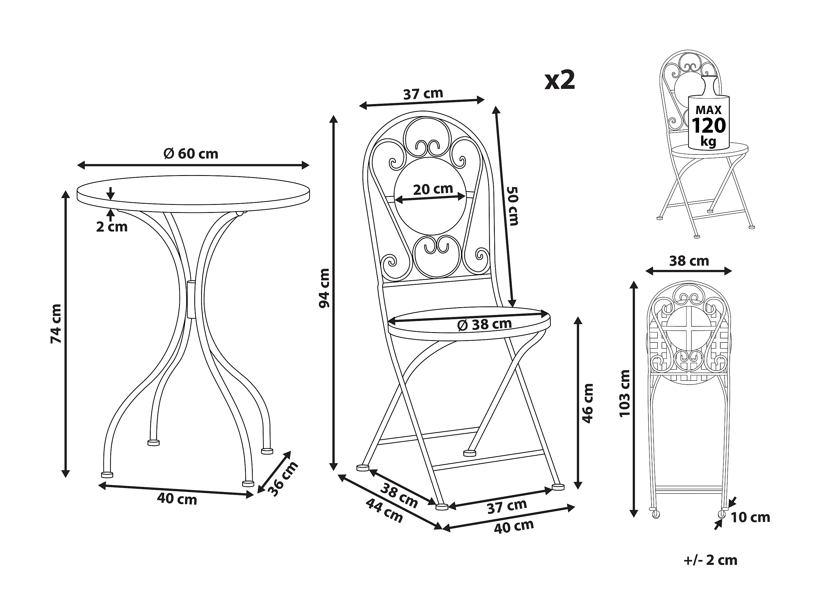 Ensemble pour bistro Pliant SPELLO Métal Blanc