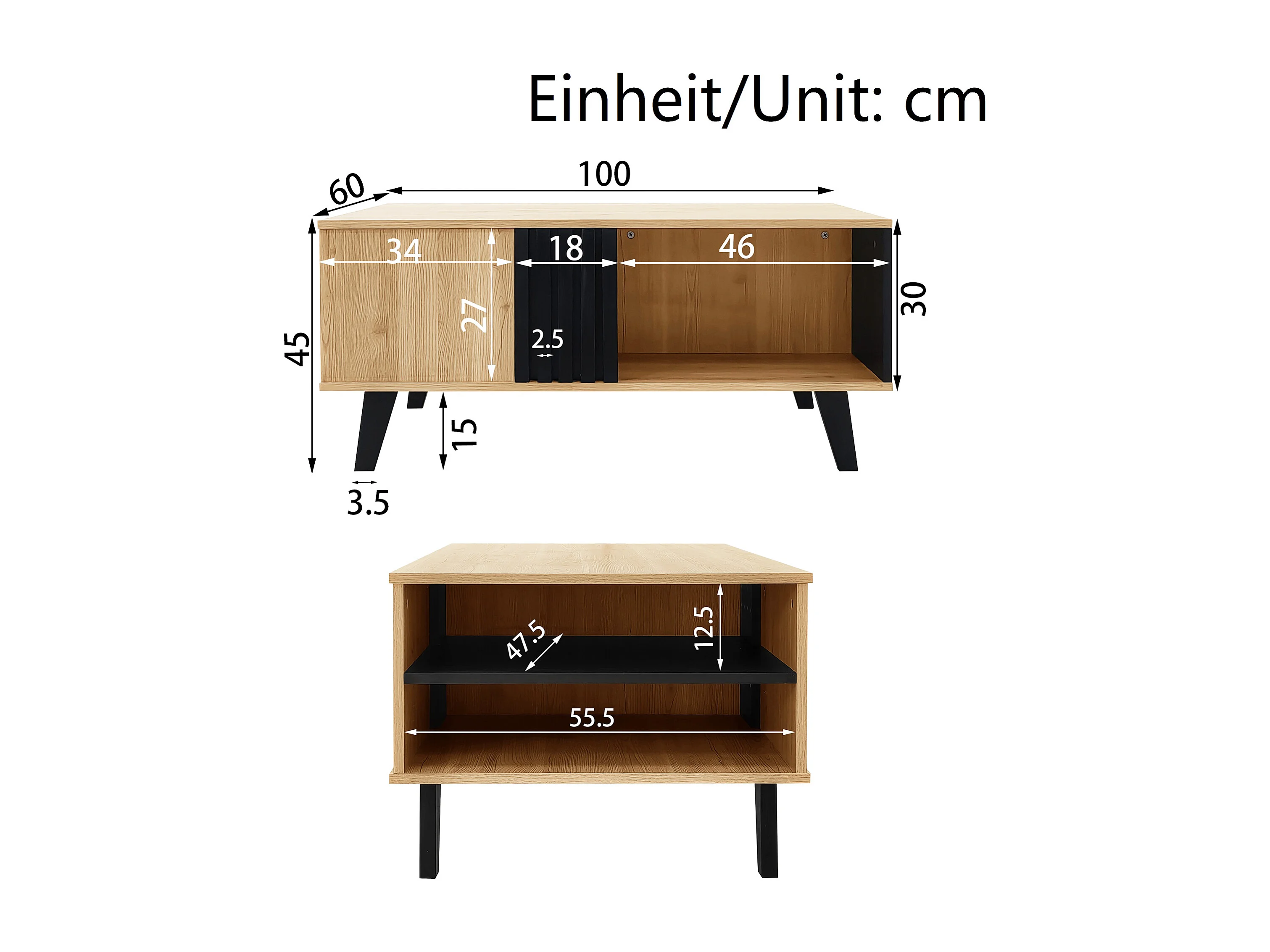 Ensemble Salon 3 Pièces - Table Basse Avec Rangement - Meuble TV 170 x 40 x 50,5 cm - Buffet LED - Panneau De Particules+Verre - Noir+Bois