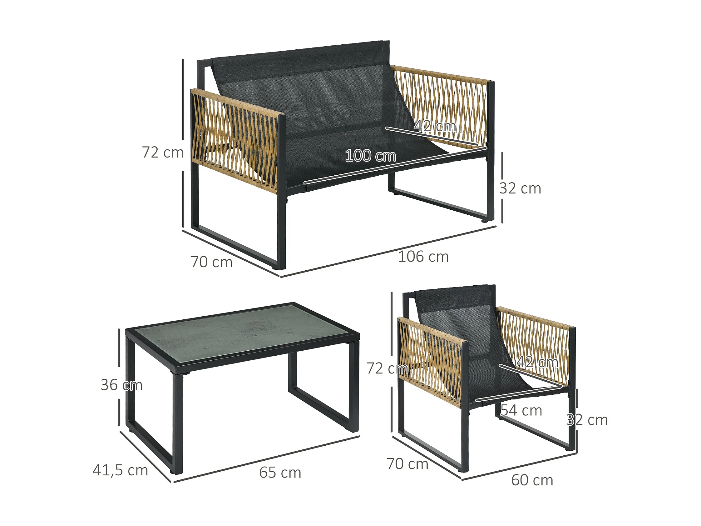 Ensemble salon de jardin 4 places 4 pièces 3 coussins acier résine gri