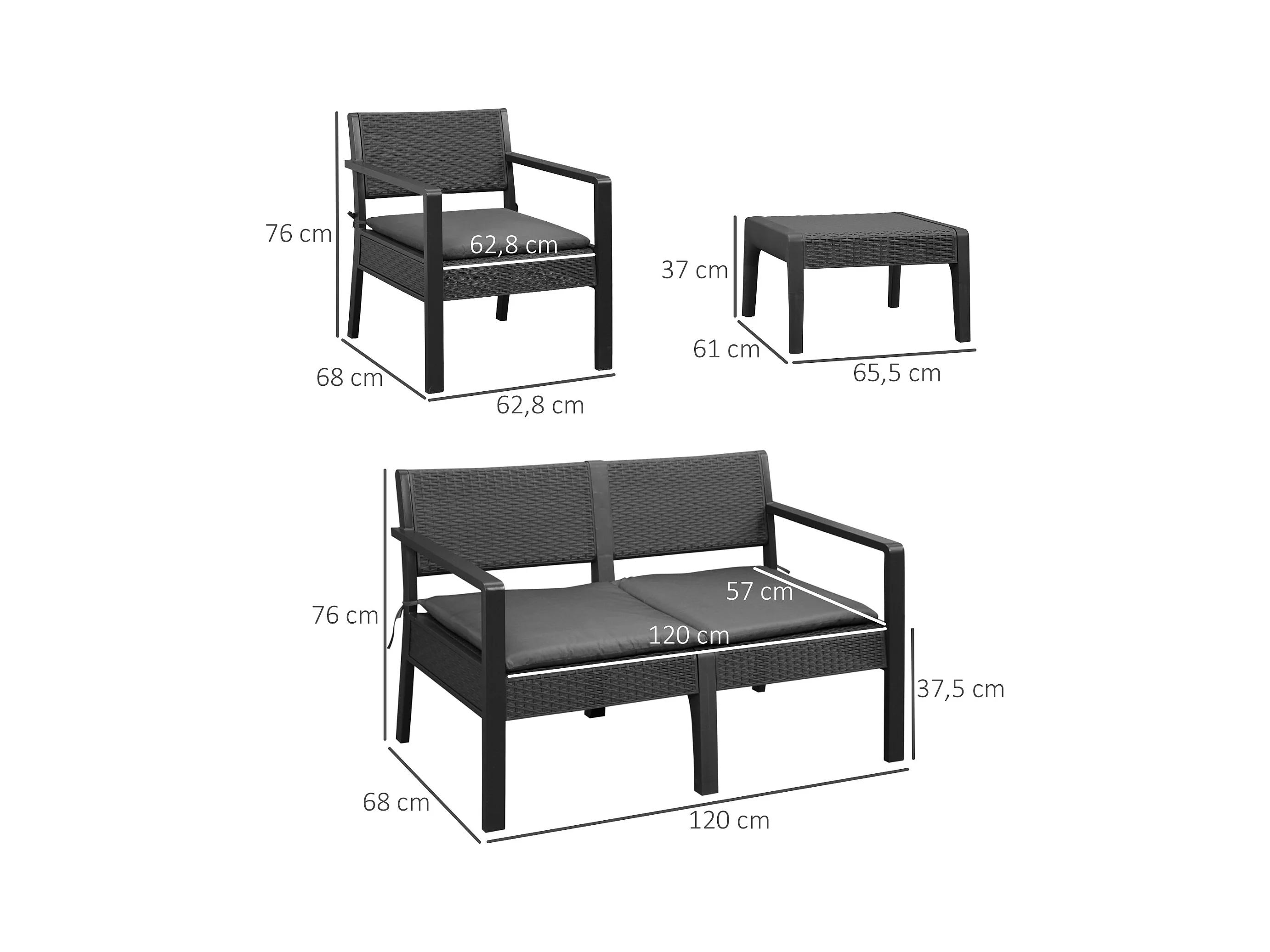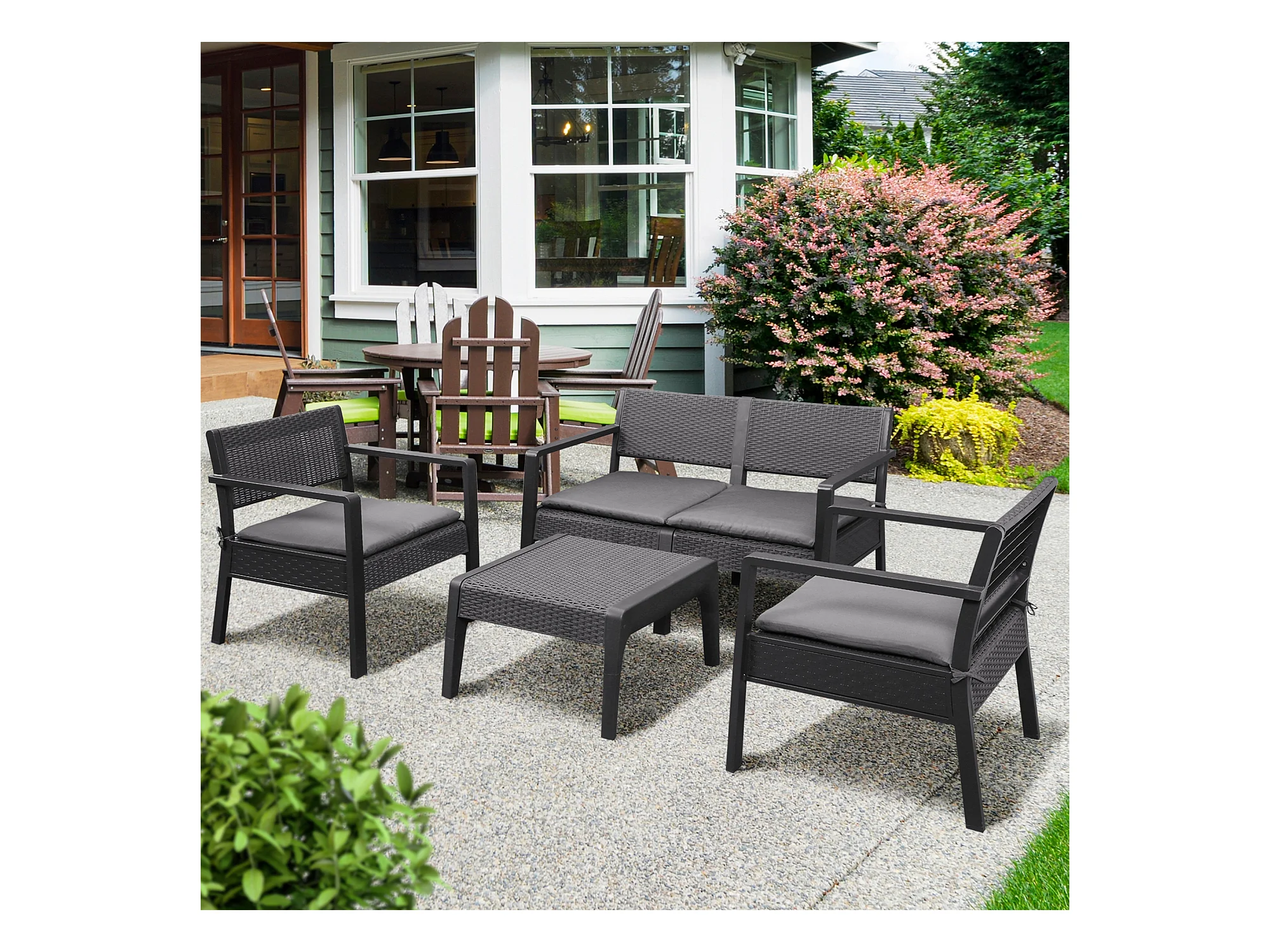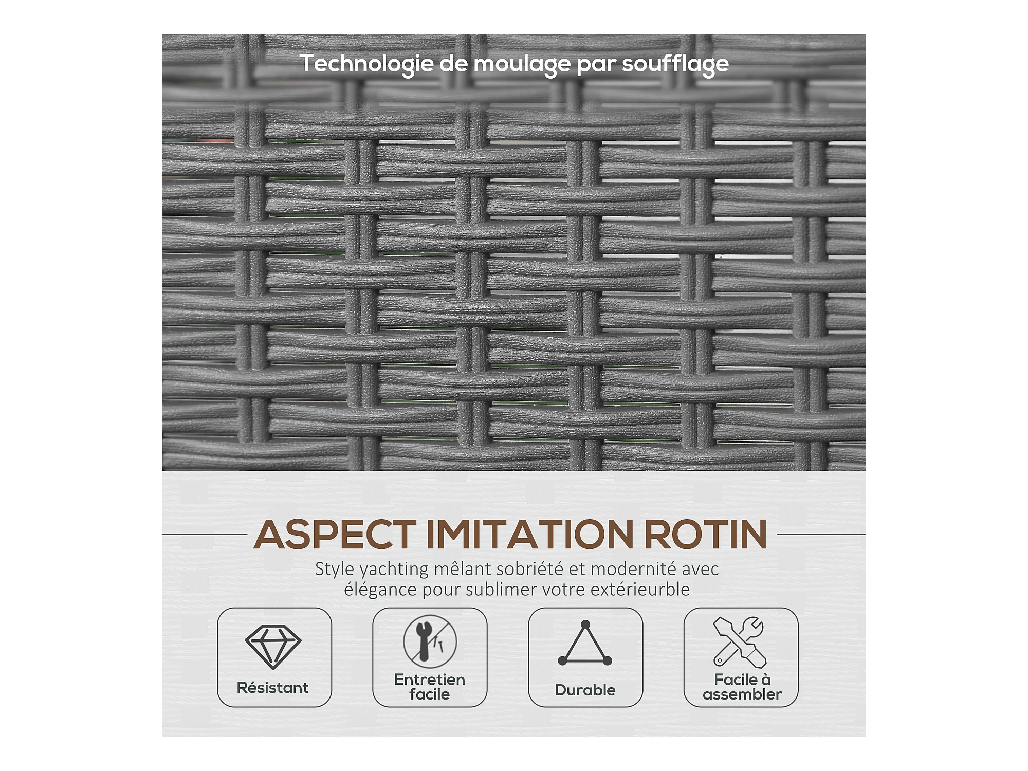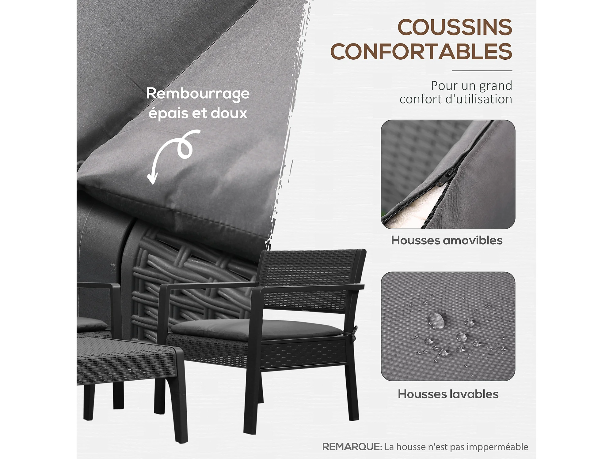 Ensemble salon de jardin 4 places 4 pièces design style yachting coussins déhoussables inclus table basse métal époxy résine tressée anthracite