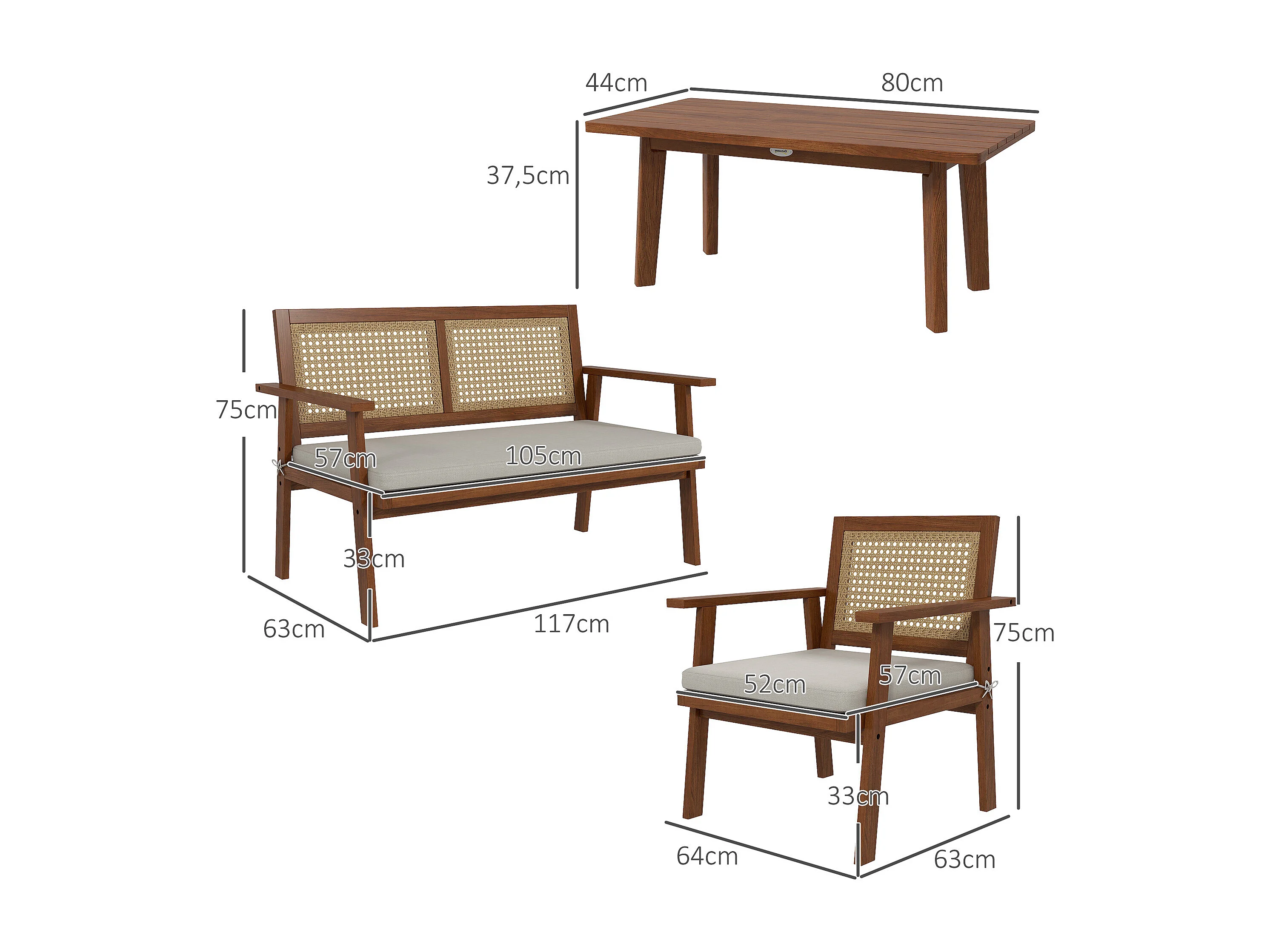 Ensemble salon de jardin 4 places 4 pièces style colonial bois aspect rotin