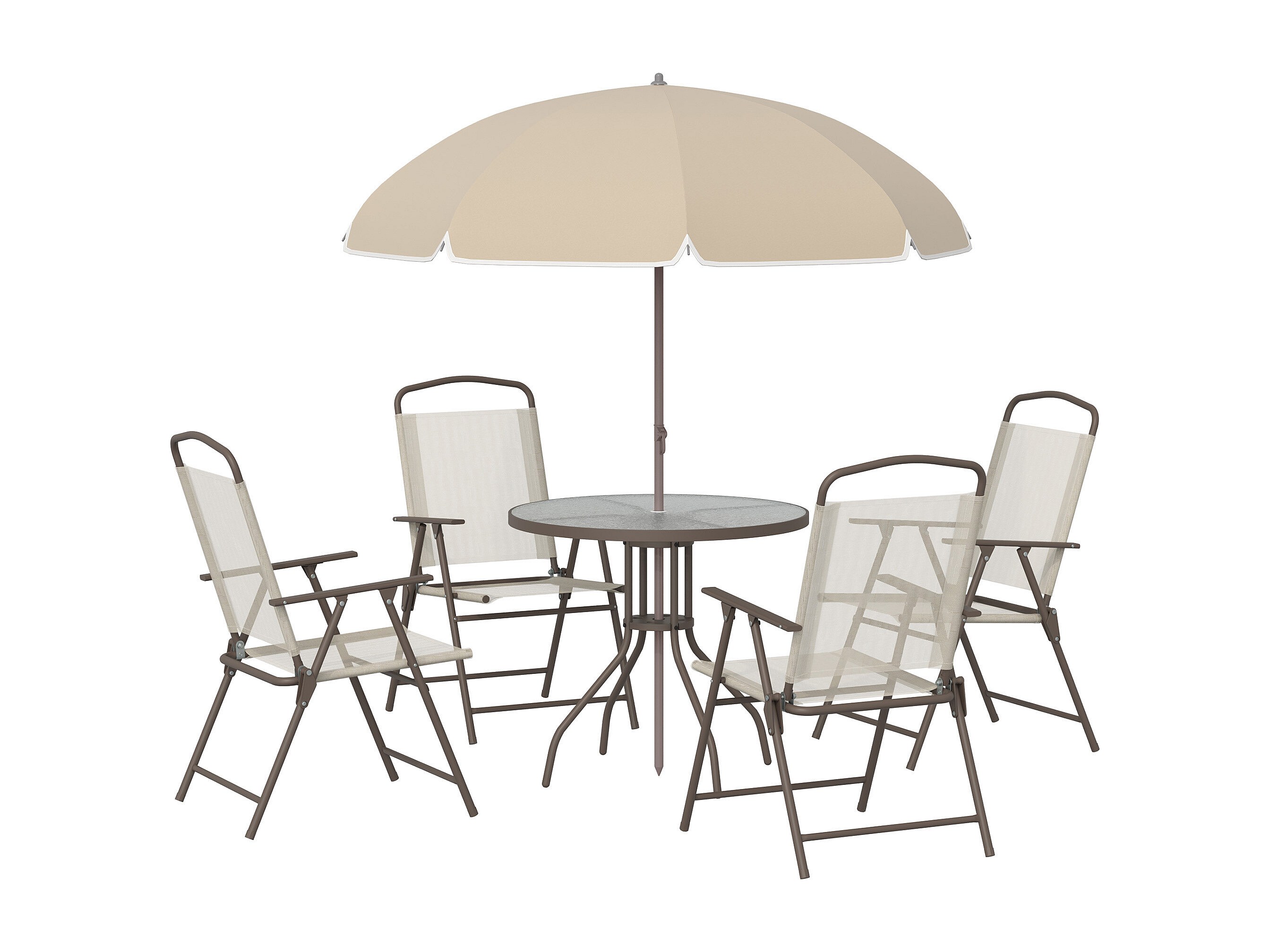 Ensemble salon de jardin 6 pcs - table ronde + 4 chaises pliables + parasol - acier époxy café textilène polyester beige