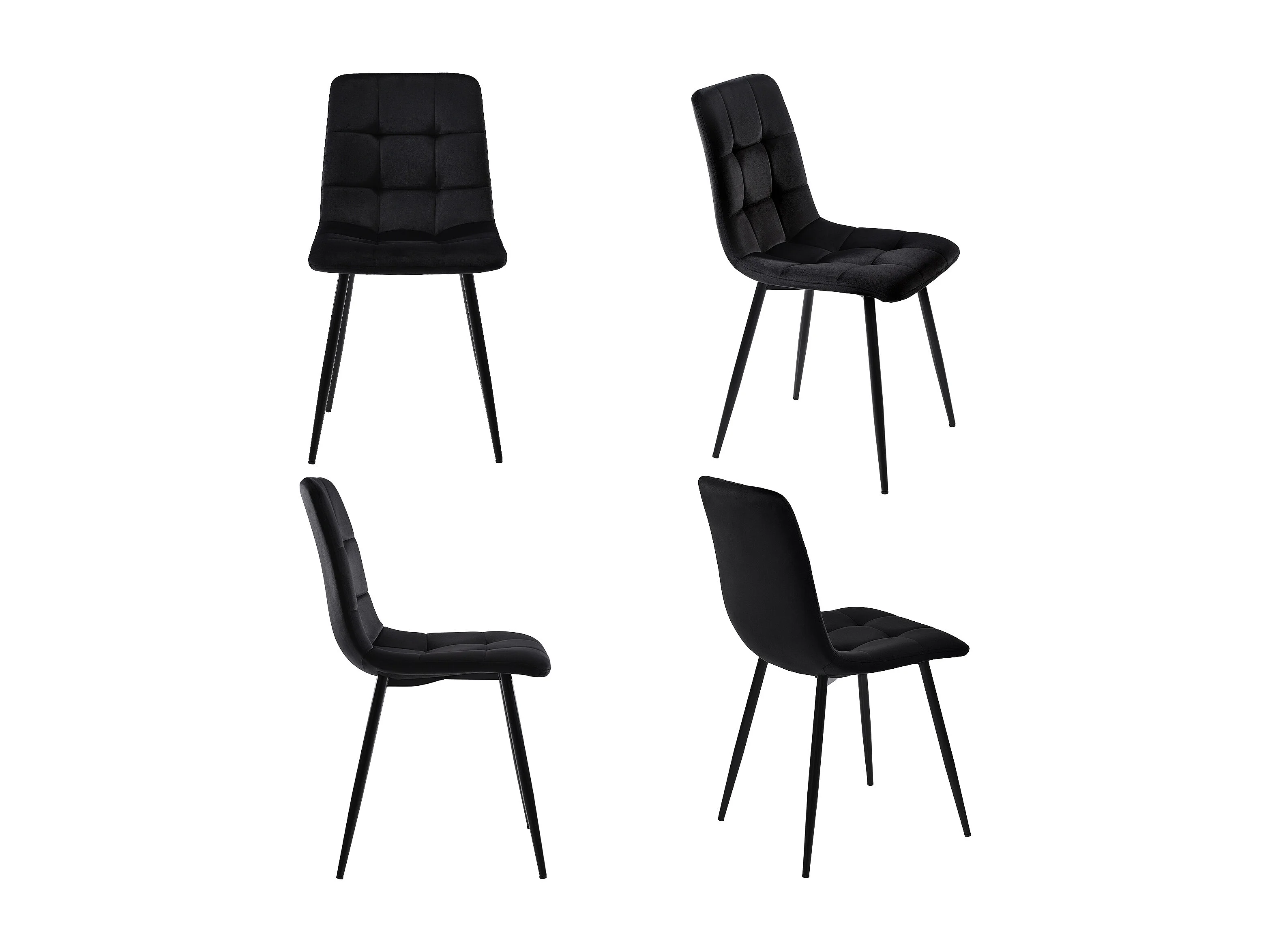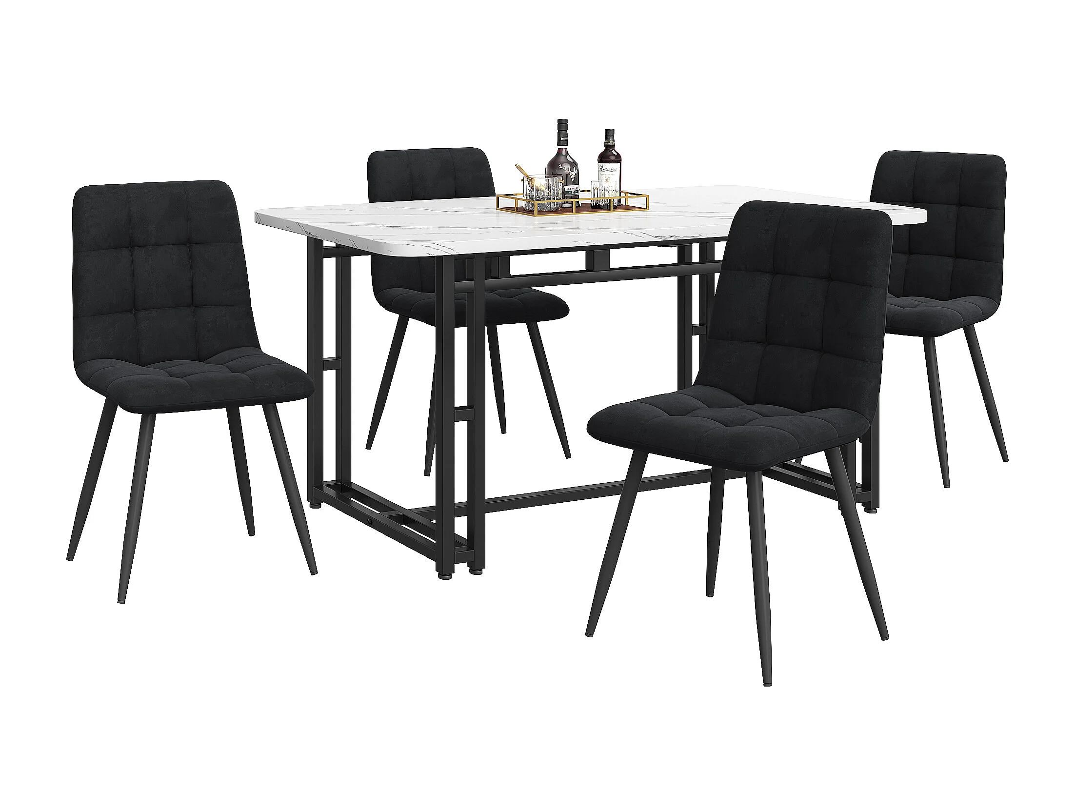 Ensemble table rectangulaire 140x80 cm et 4 chaises velours noir - pieds de table en métal noir - plateau en MDF blanc