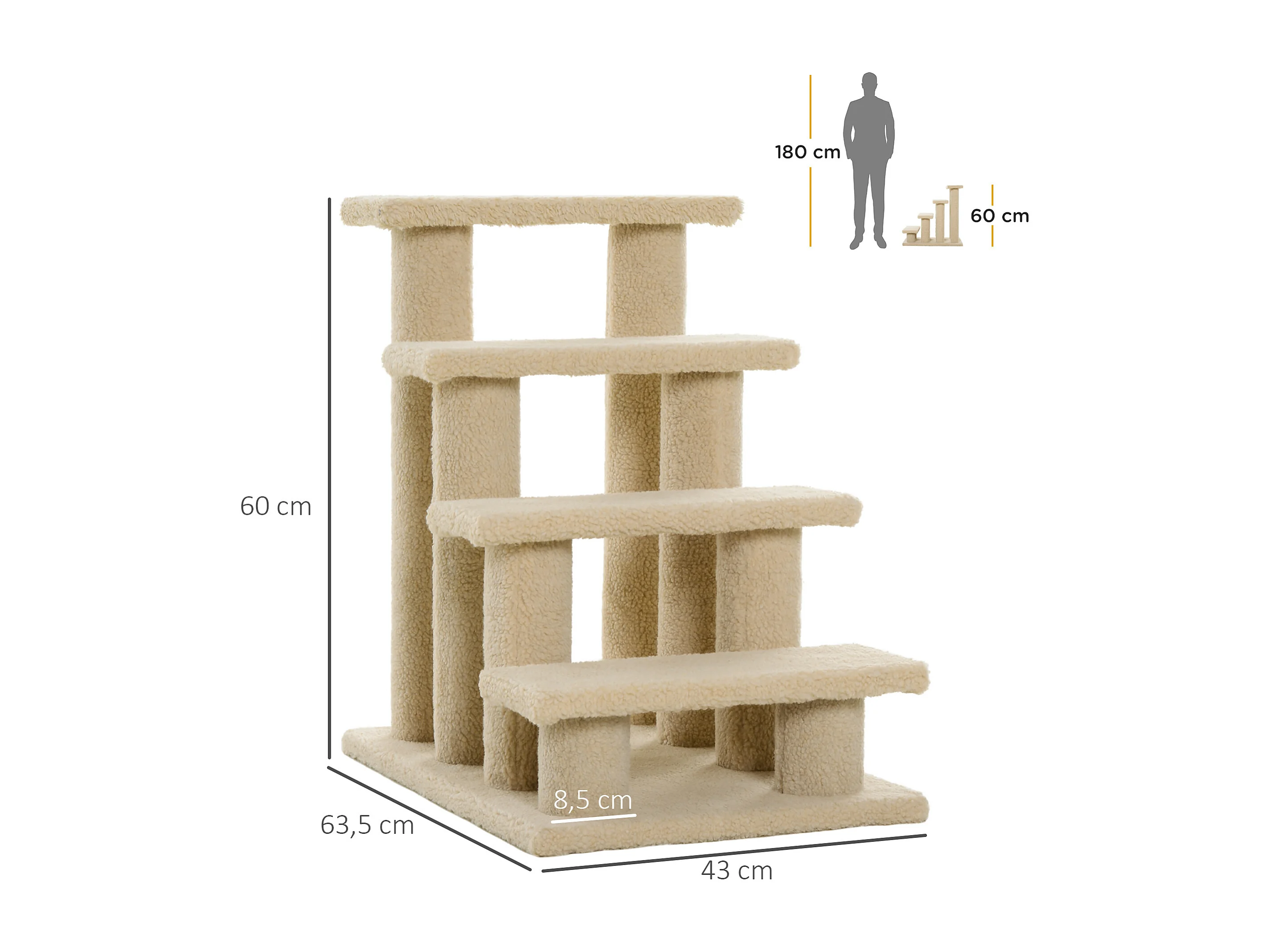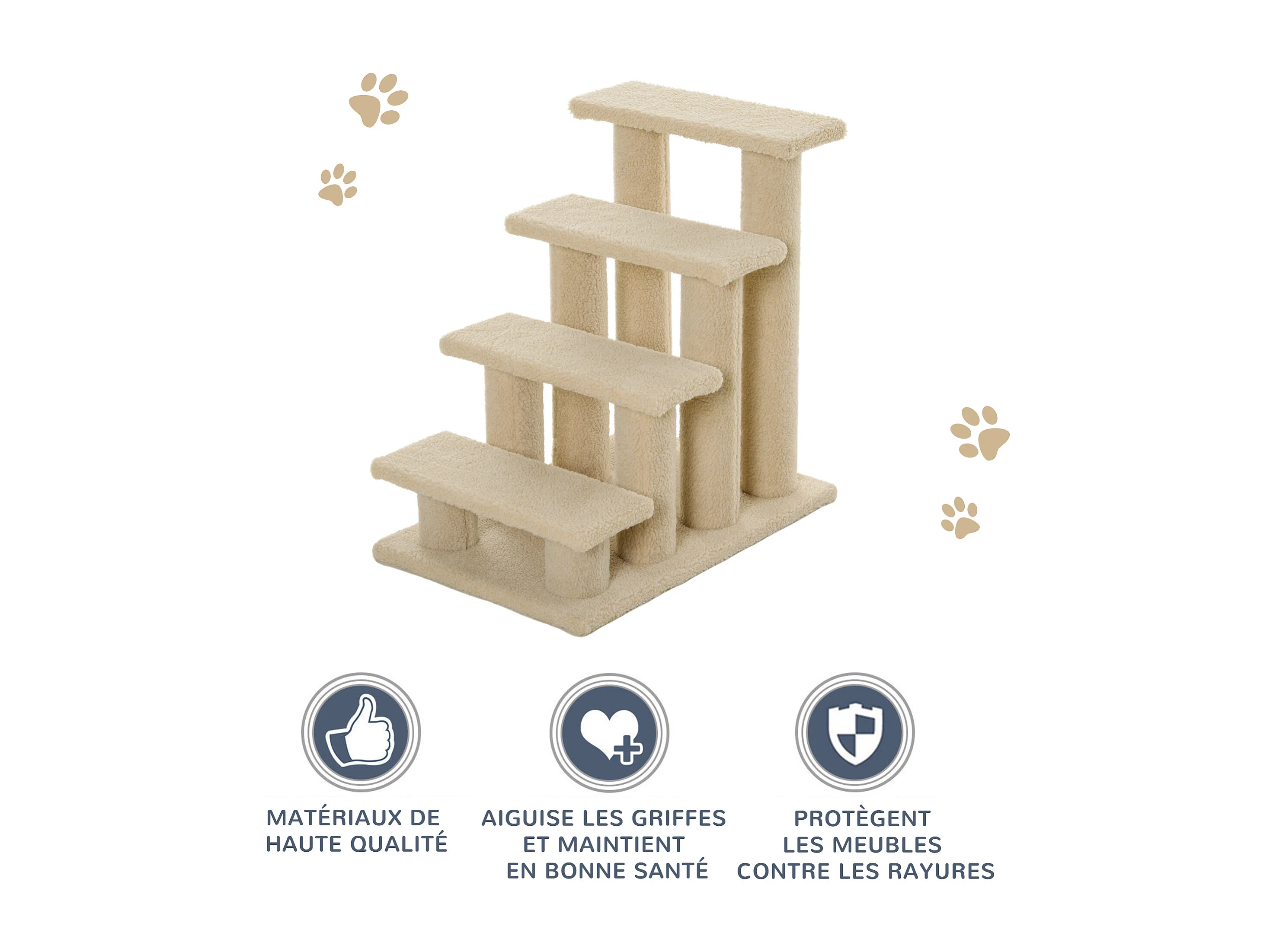 Escalier pour chat - escalier pour chien - 4 marches - revêtement flanelle grande douceur haute densité - structure panneaux particules - beige