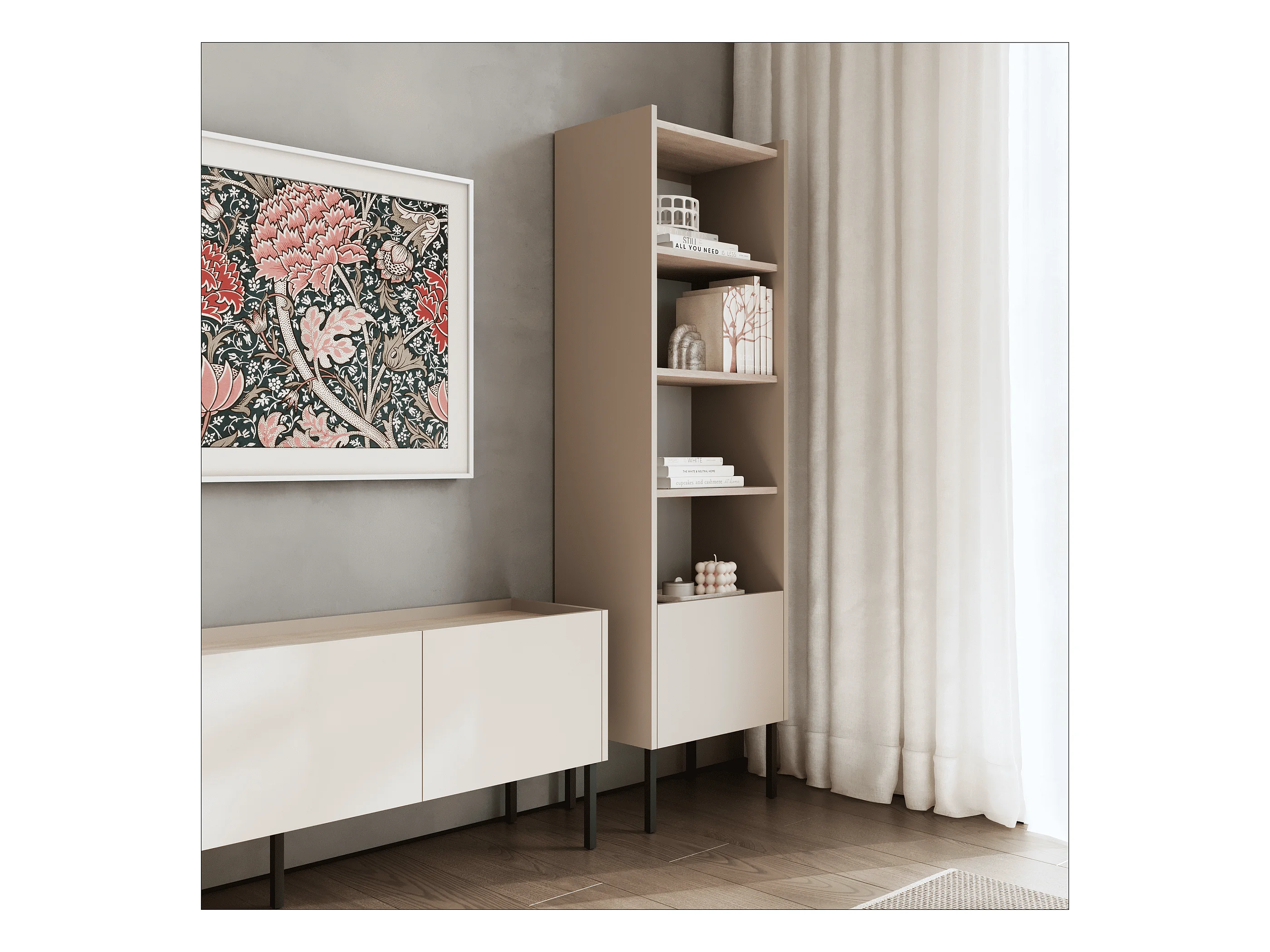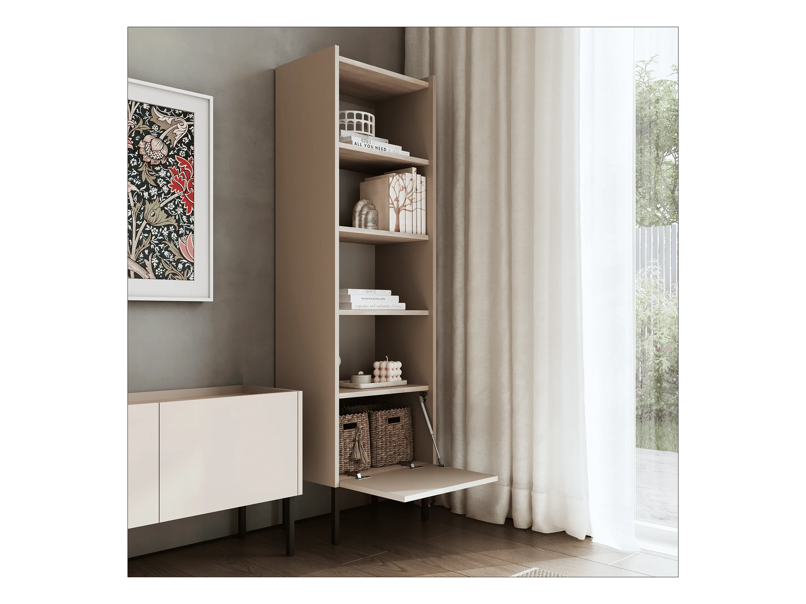Étagère 50 x 35 x 173 cm - Étagère sur pied avec compartiments ouverts et portes - Bibliothèque - Pieds en métal - Plaque Egger - Salon ou bureau - Mat