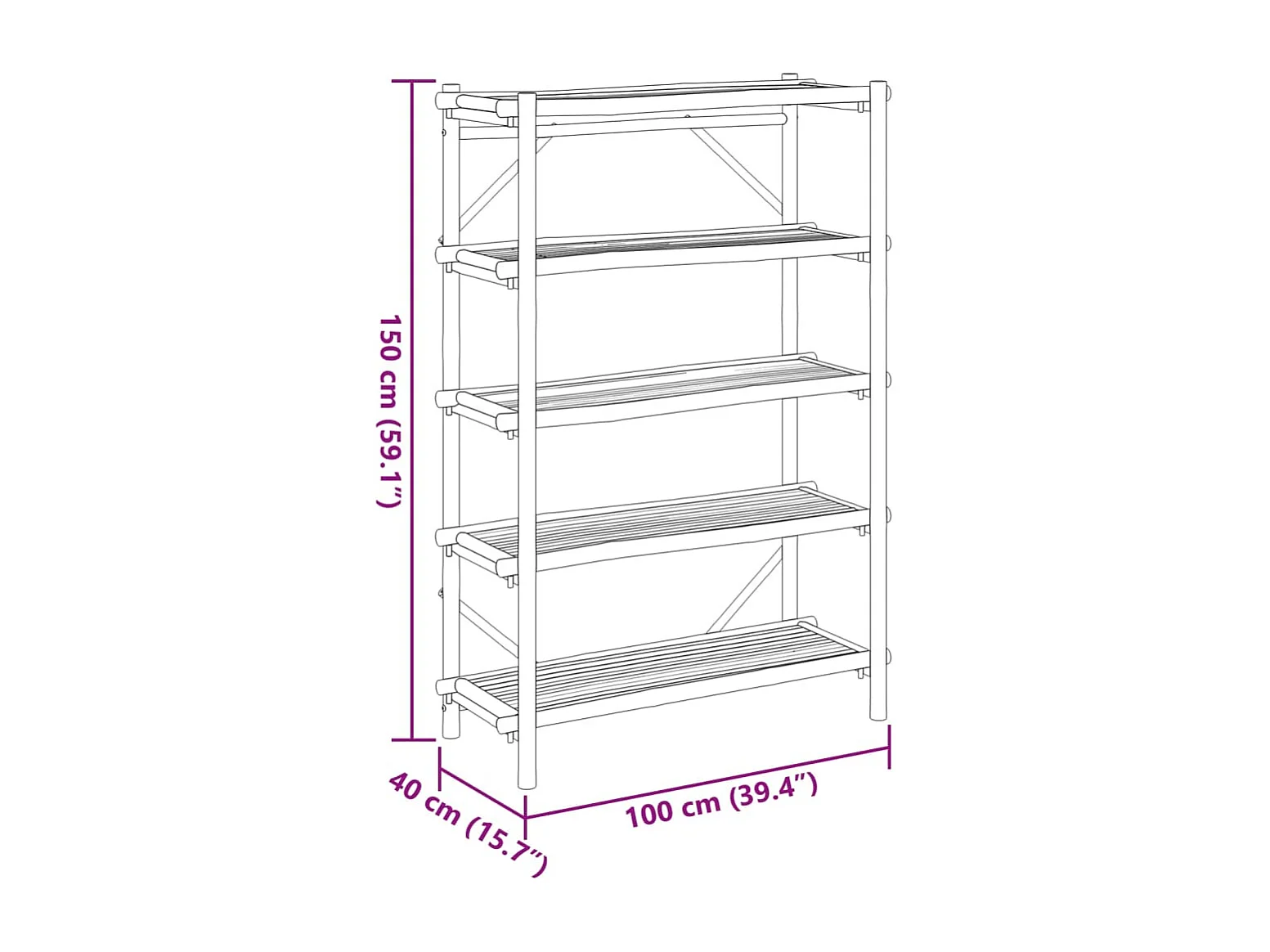 Étagère à 5 niveaux 100x40x150 cm bambou