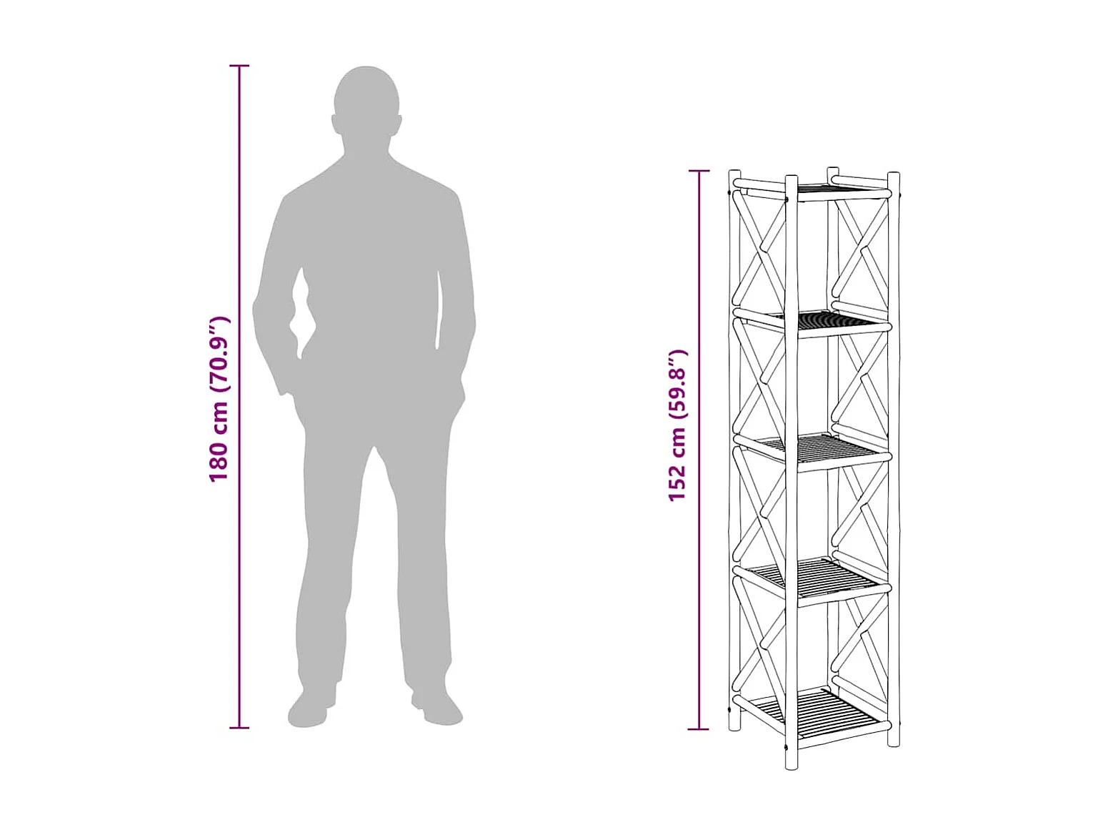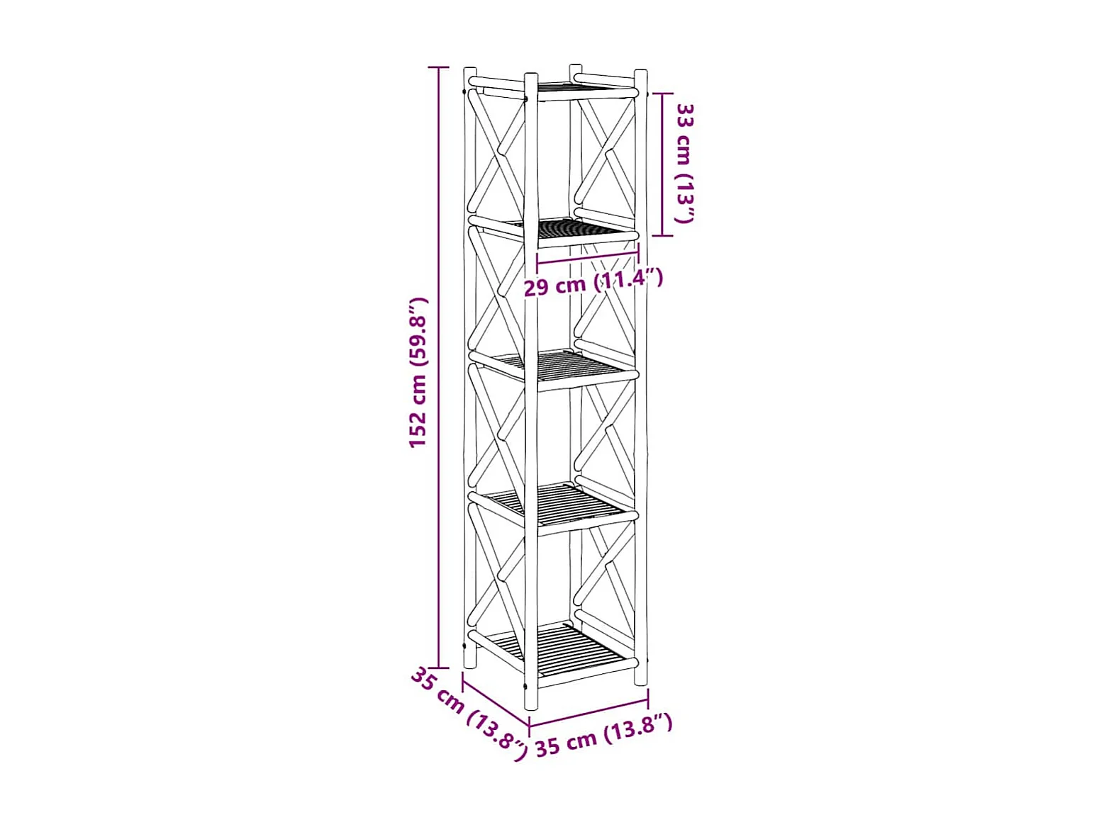 Étagère à 5 niveaux carré bambou