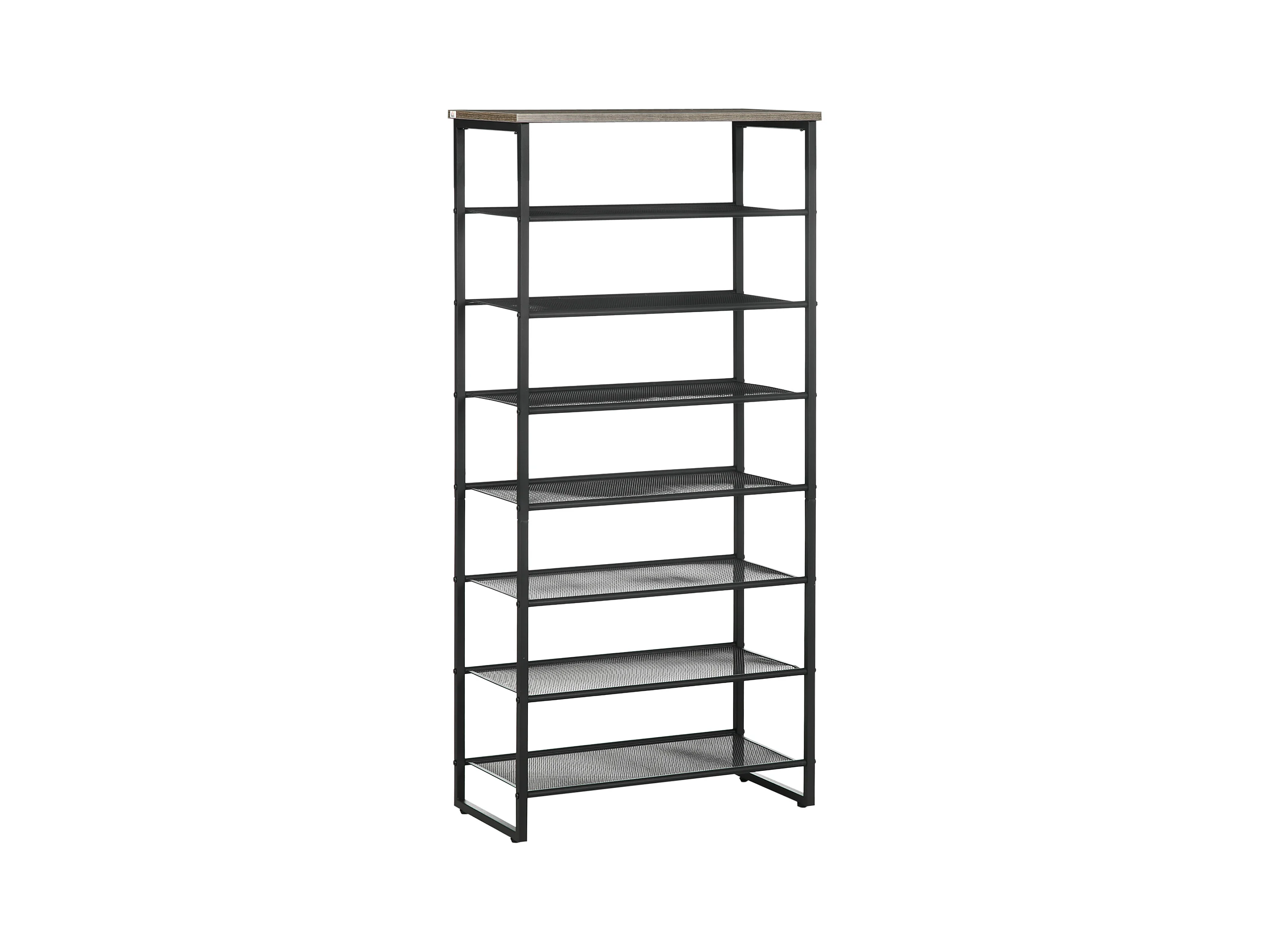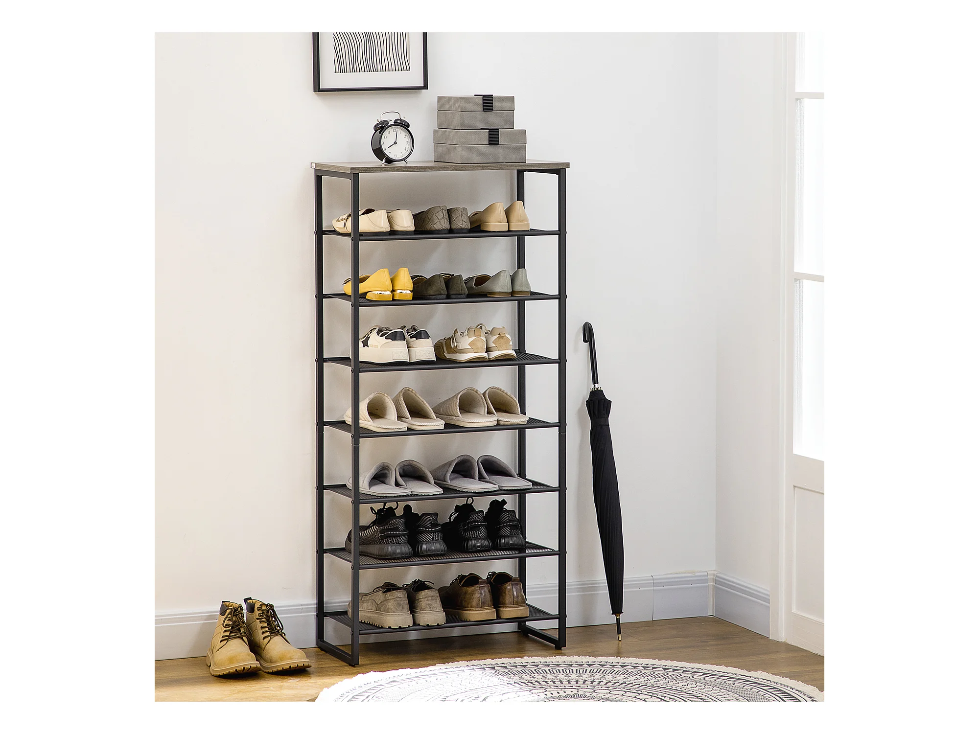 Etagère à chaussures 7 niveaux - rack à chaussures 7 étagères et plateau - acier noir aspect bois gris