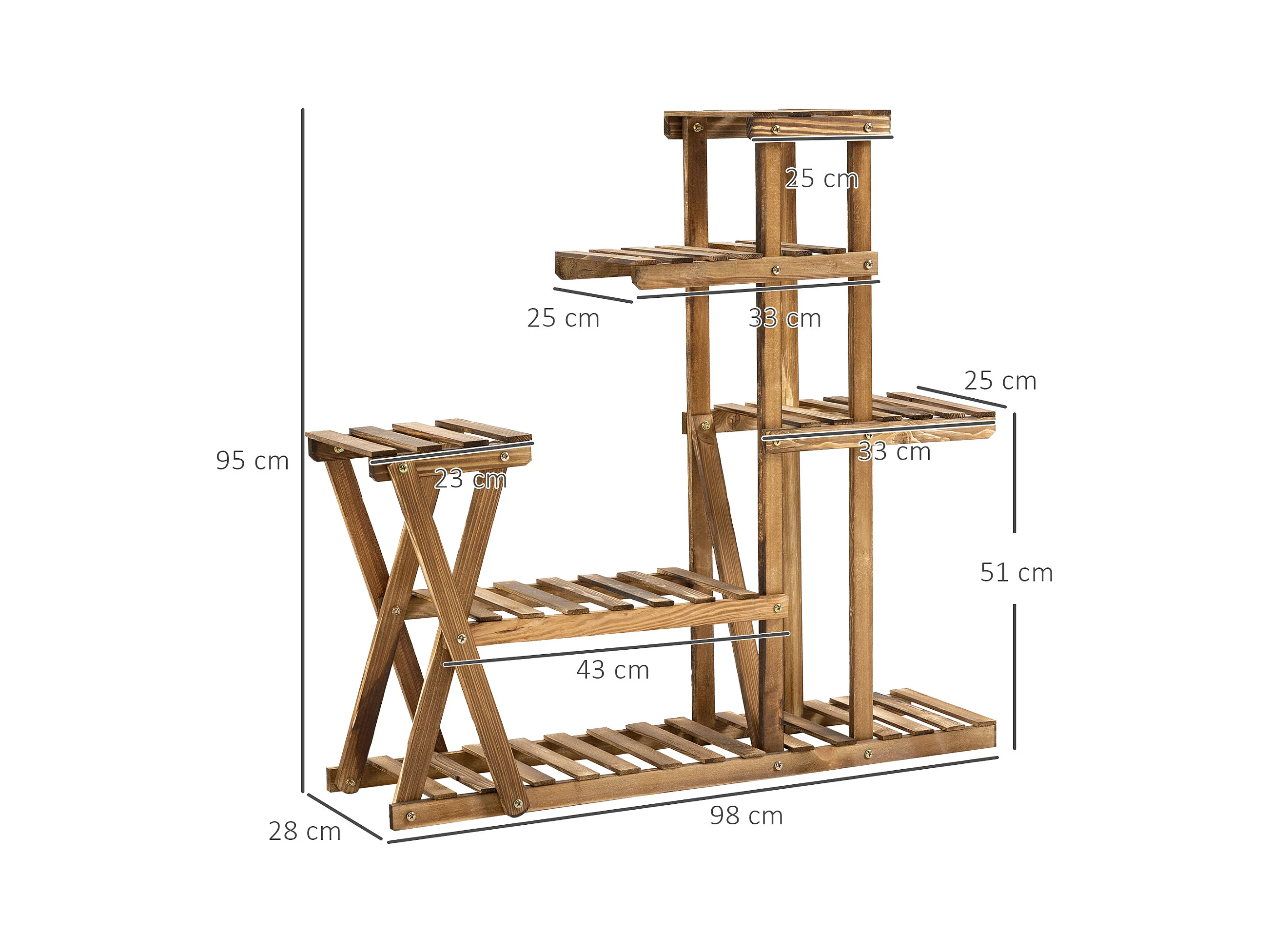 Étagère à fleurs en bois - porte plante bois 6 tablettes - dim. 98L x 28l x 96,5H cm - bois de sapin traité carbonisation