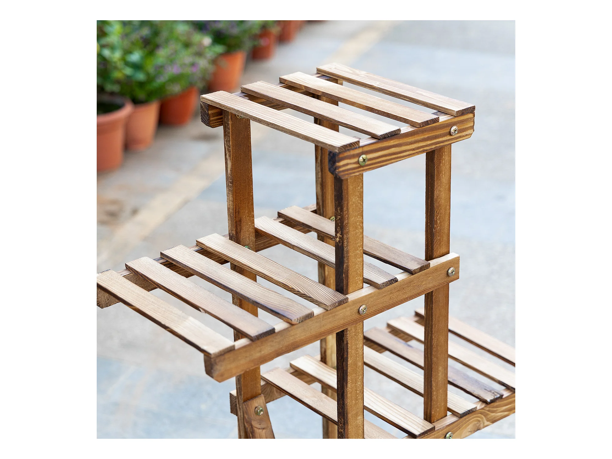 Étagère à fleurs en bois - porte plante bois 6 tablettes - dim. 98L x 28l x 95H cm - bois de sapin traité carbonisation