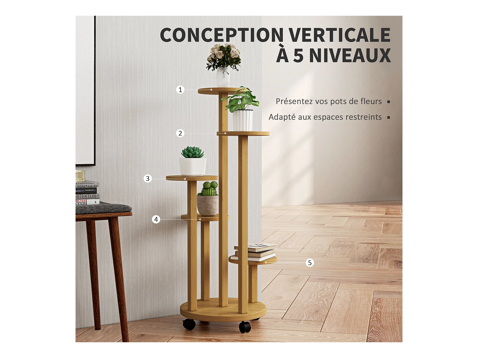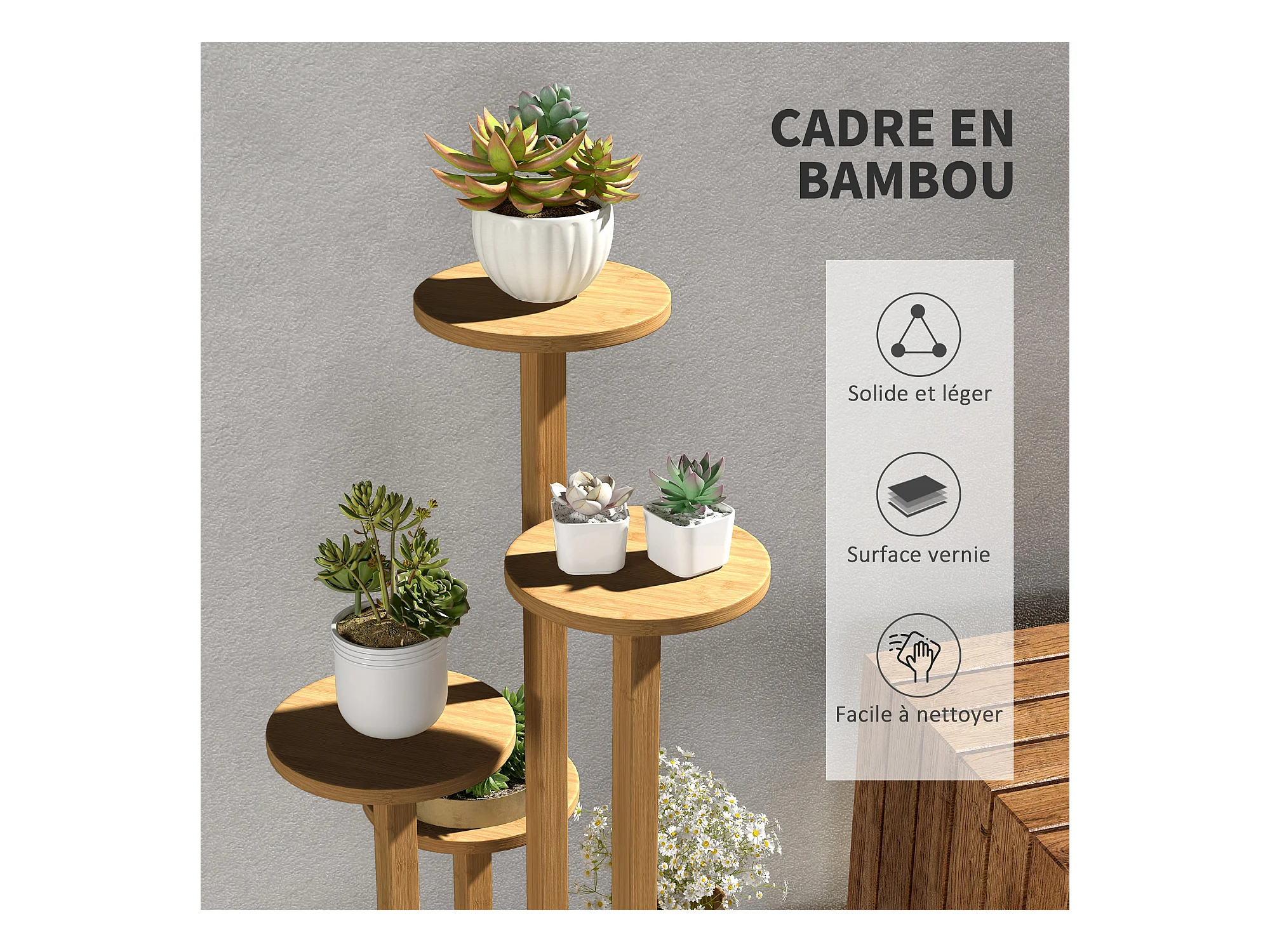 Étagère à fleurs en bois - porte plante bois 3 étagères rondes - dim. 41L x 39l x 68H cm - bois sapin verni