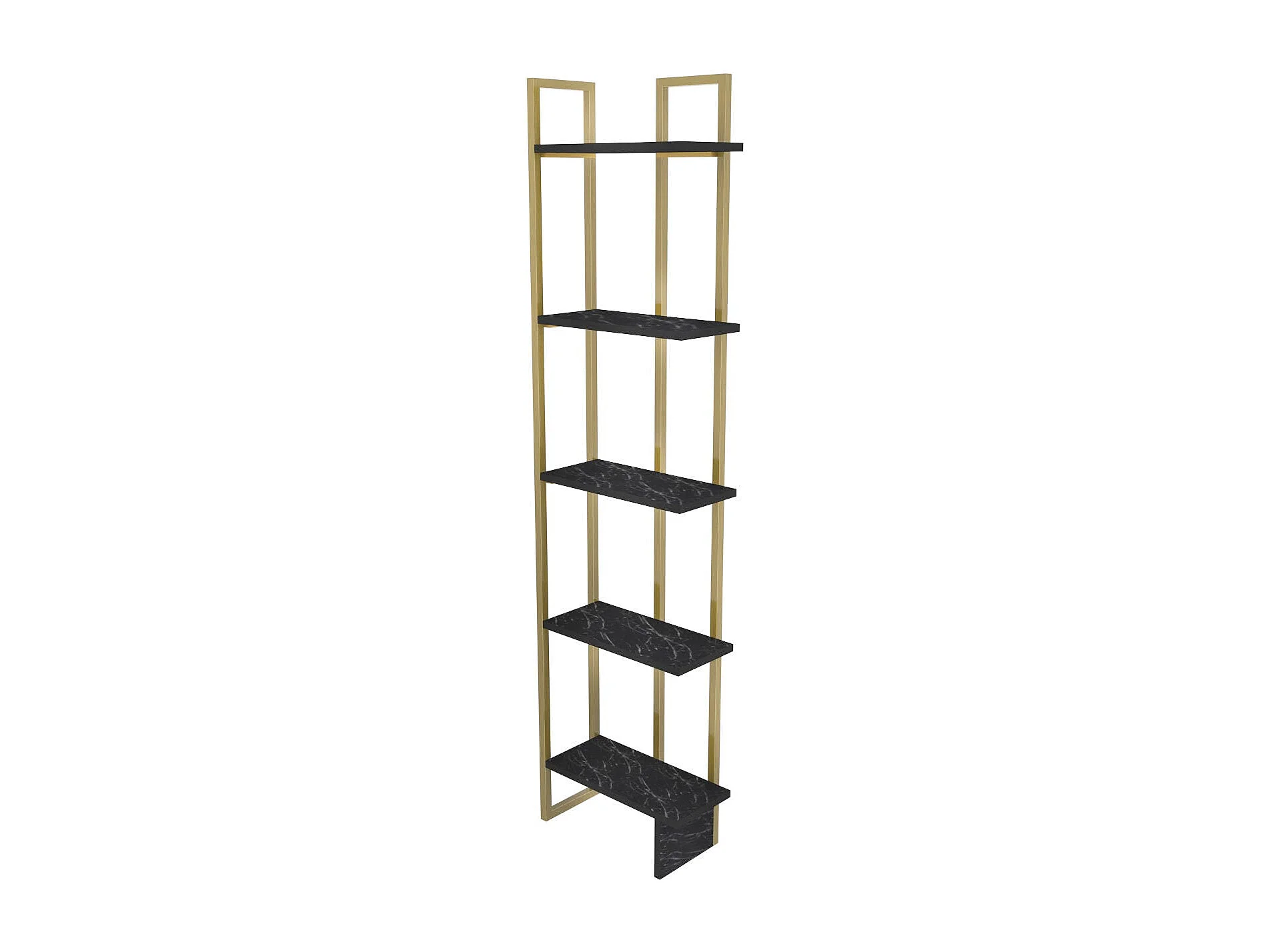 Étagère bibliothèque d'angle Haes L45cm Métal Or et Bois Effet marbre Noir