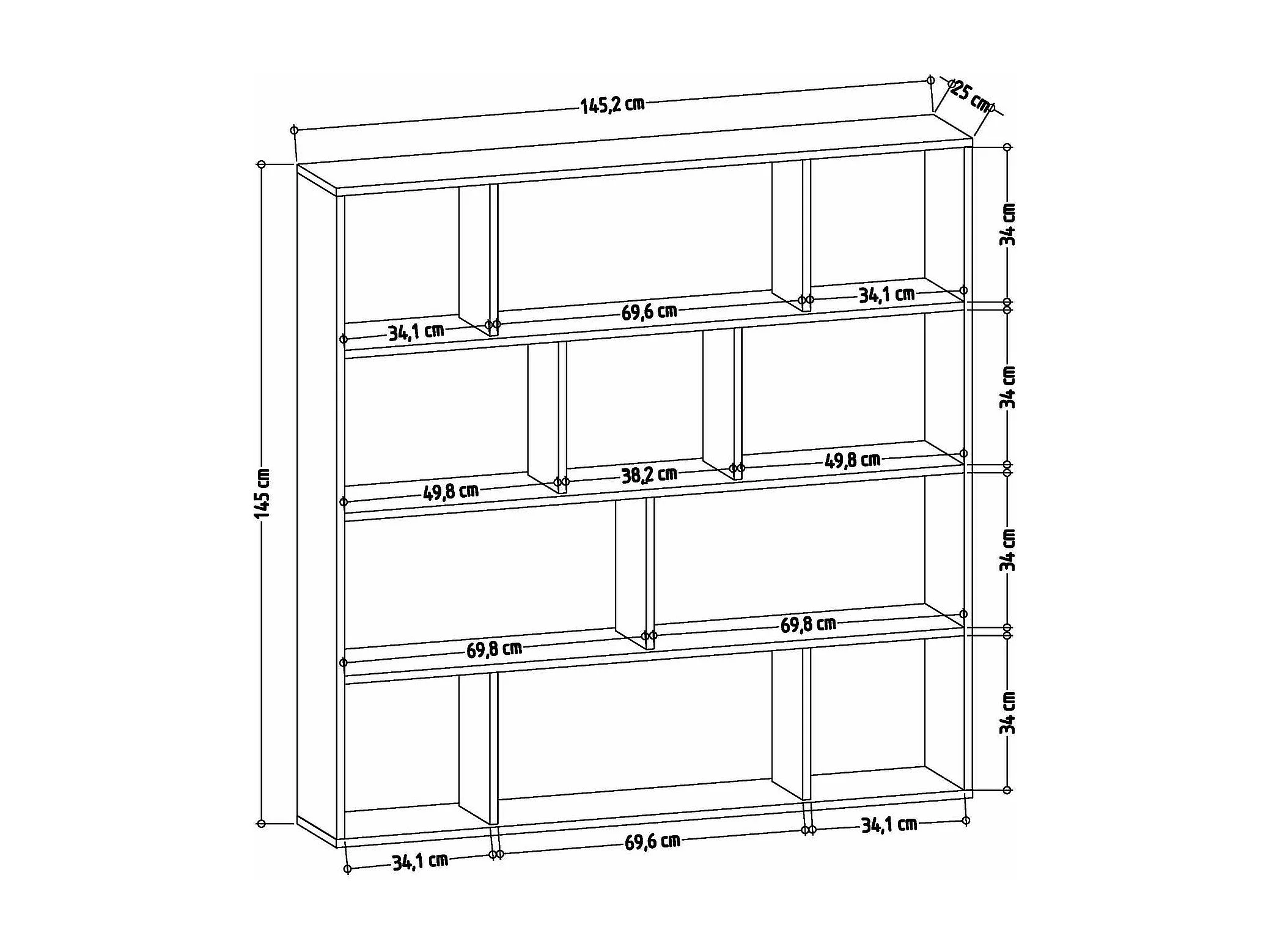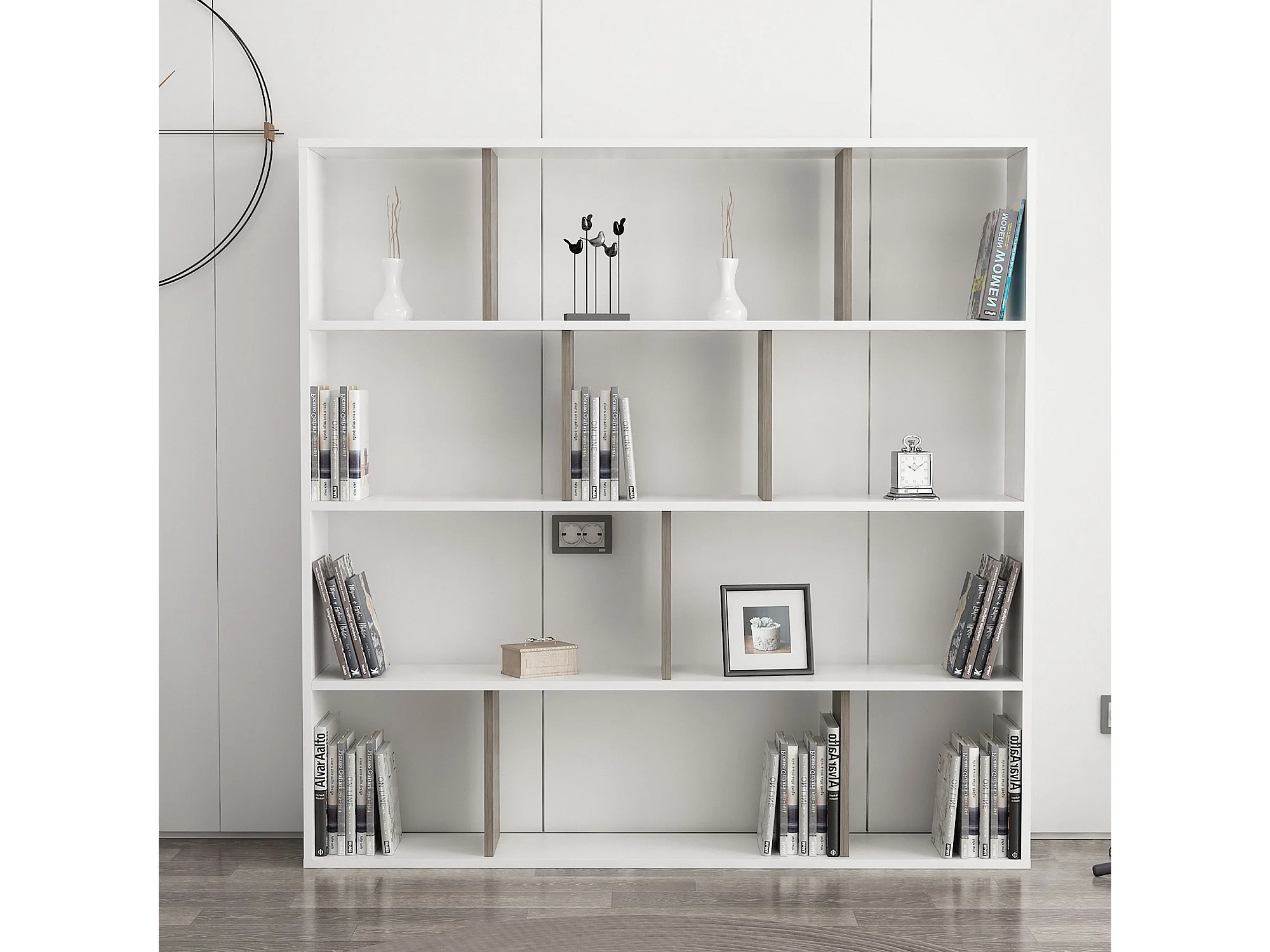 Étagère bibliothèque Repono 145cm Bois Wengé et Blanc