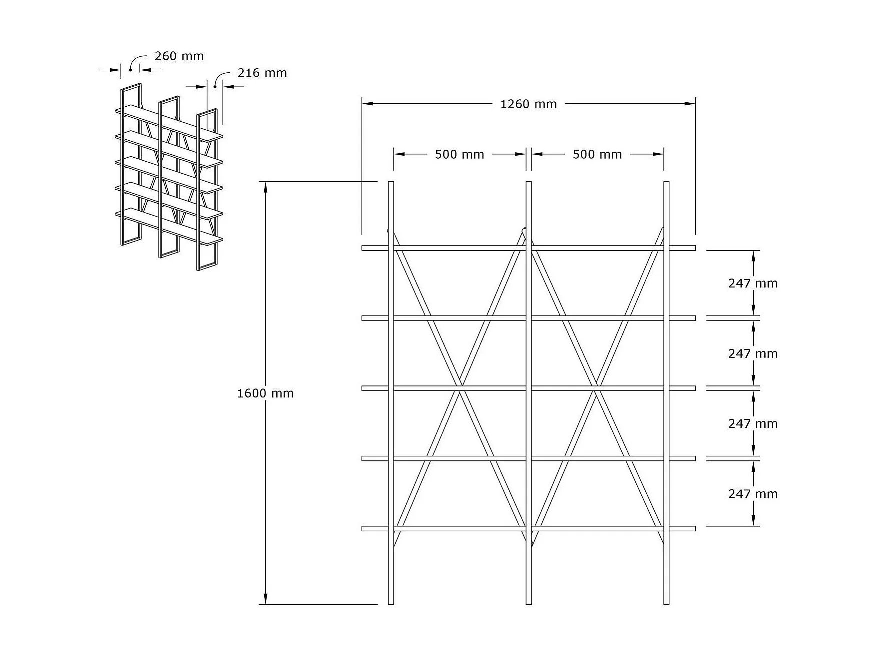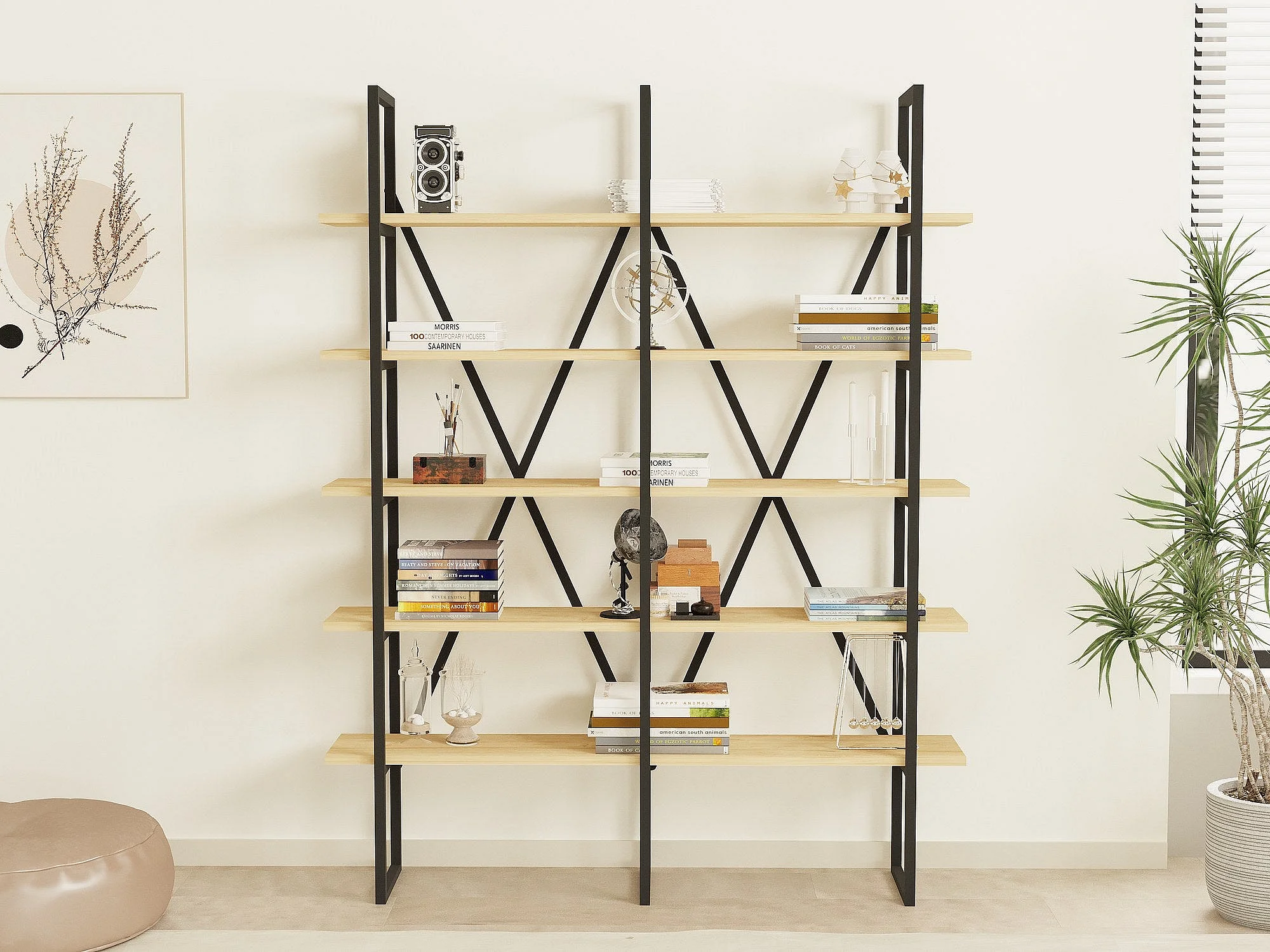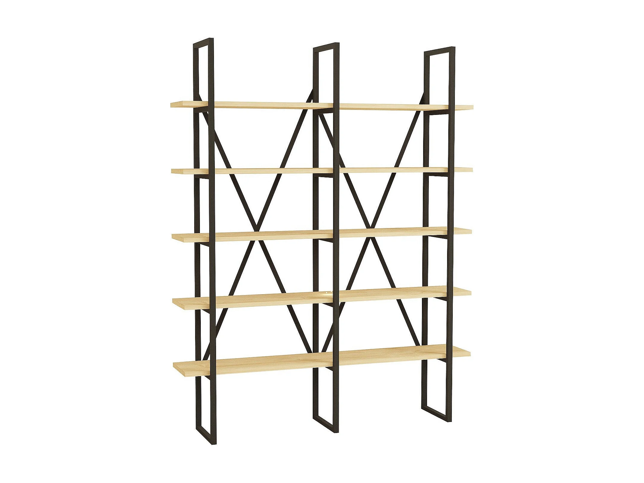 Etagères bibliothèque Arnal L125xH180cm Bois clair et Métal Noir