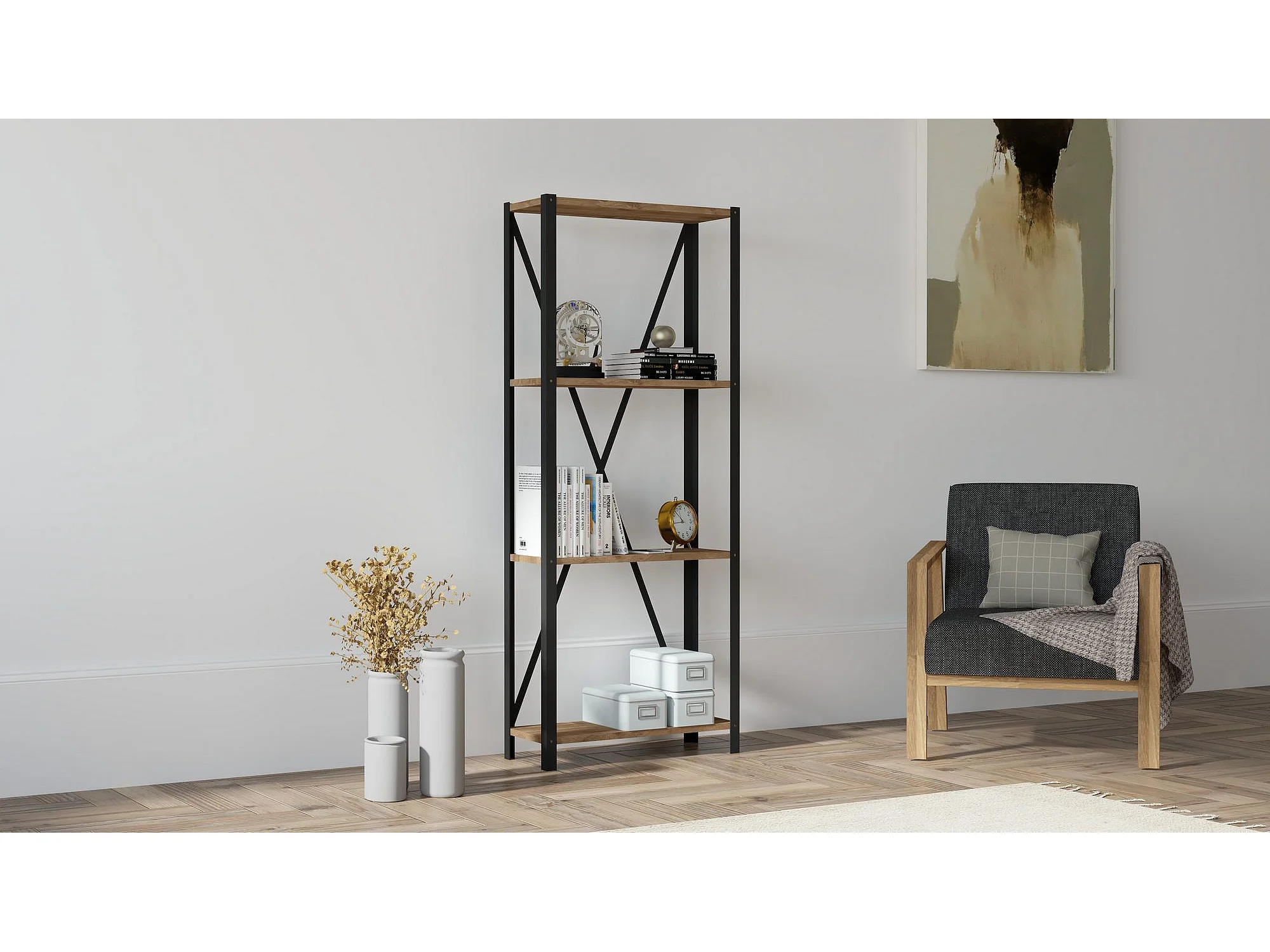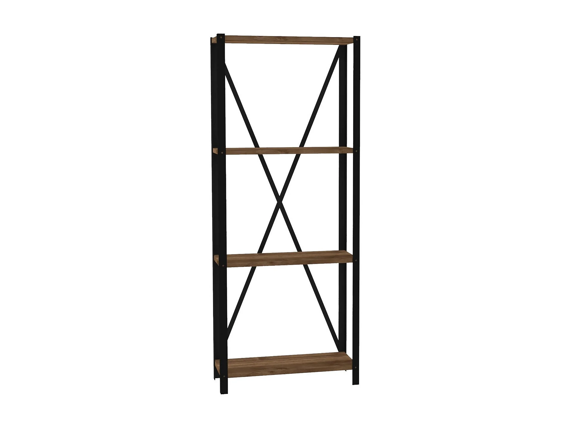 Étagère bibliothèque style industriel Levada L60cm Métal Noir et Bois foncé