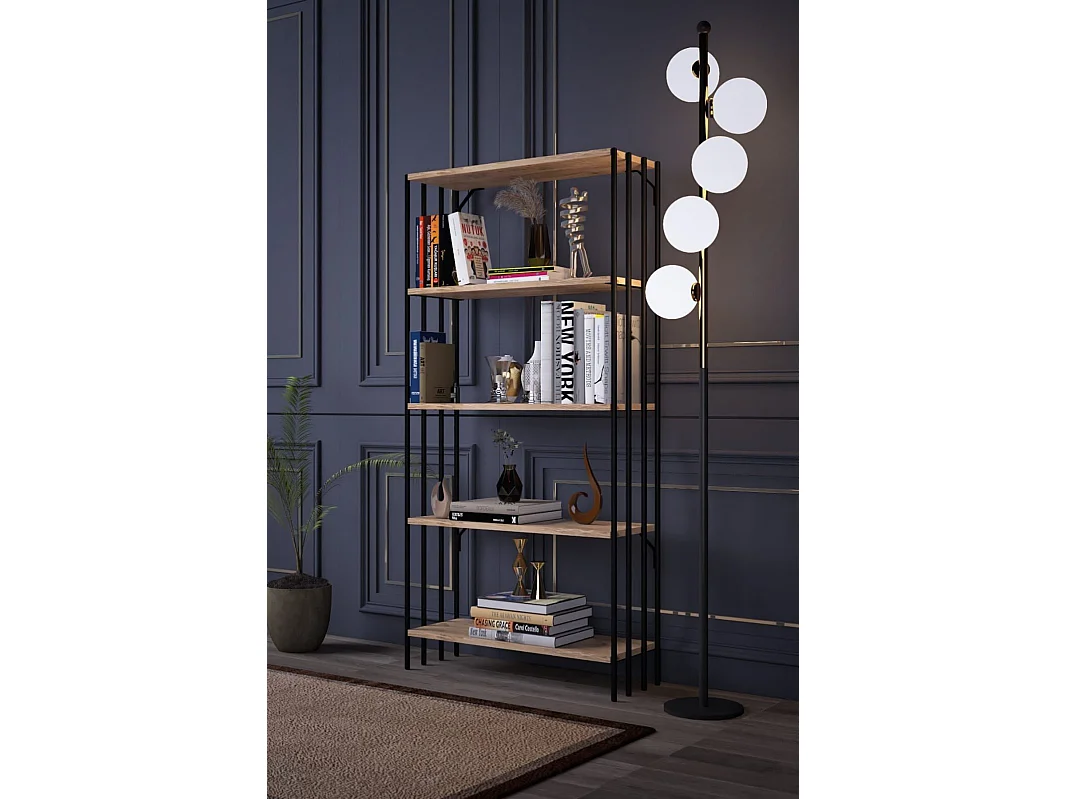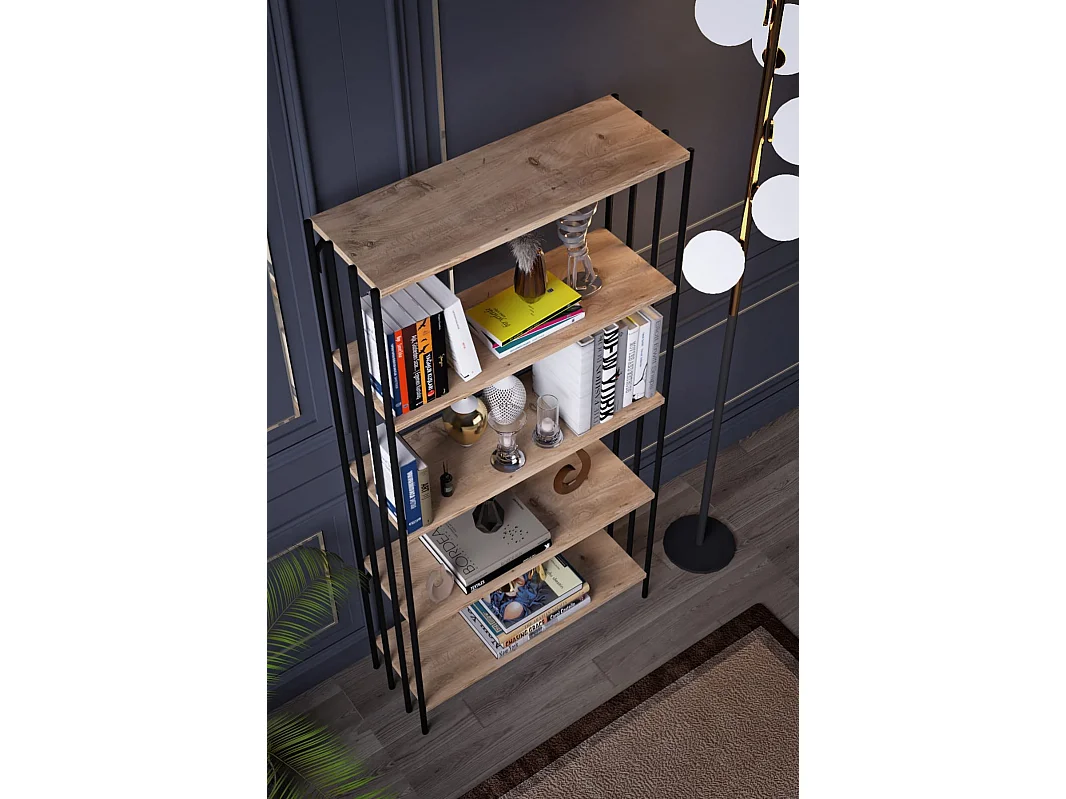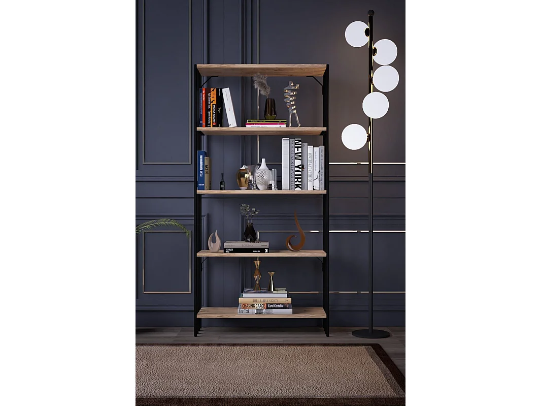 Bibliothèque Broron H180cm Métal Noir et Bois Pin foncé