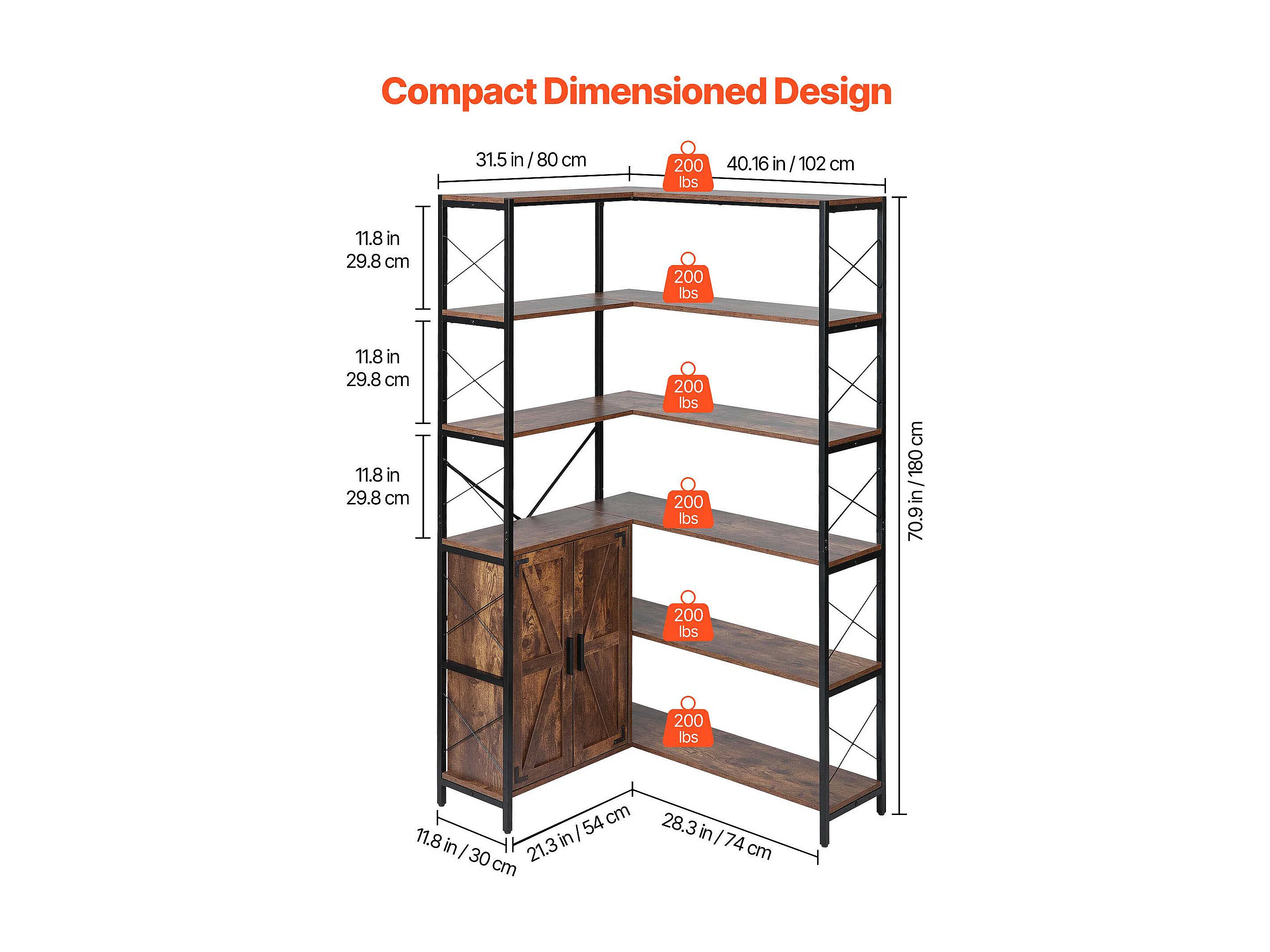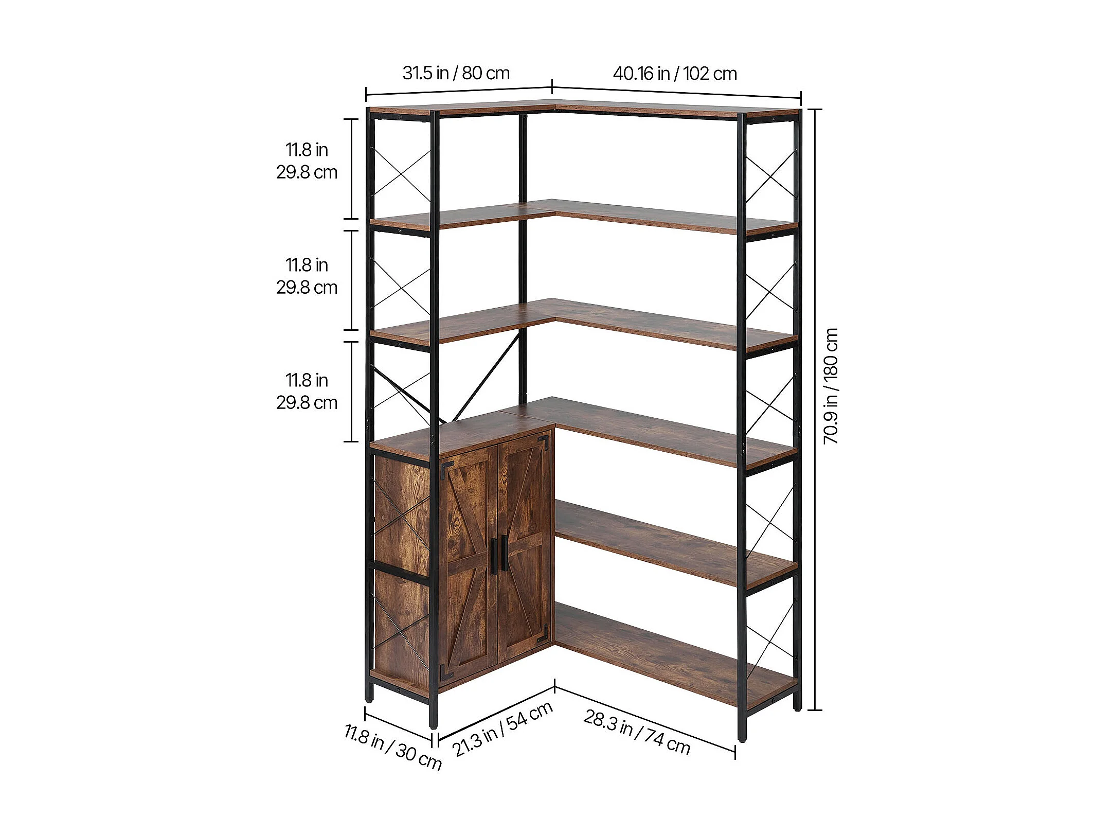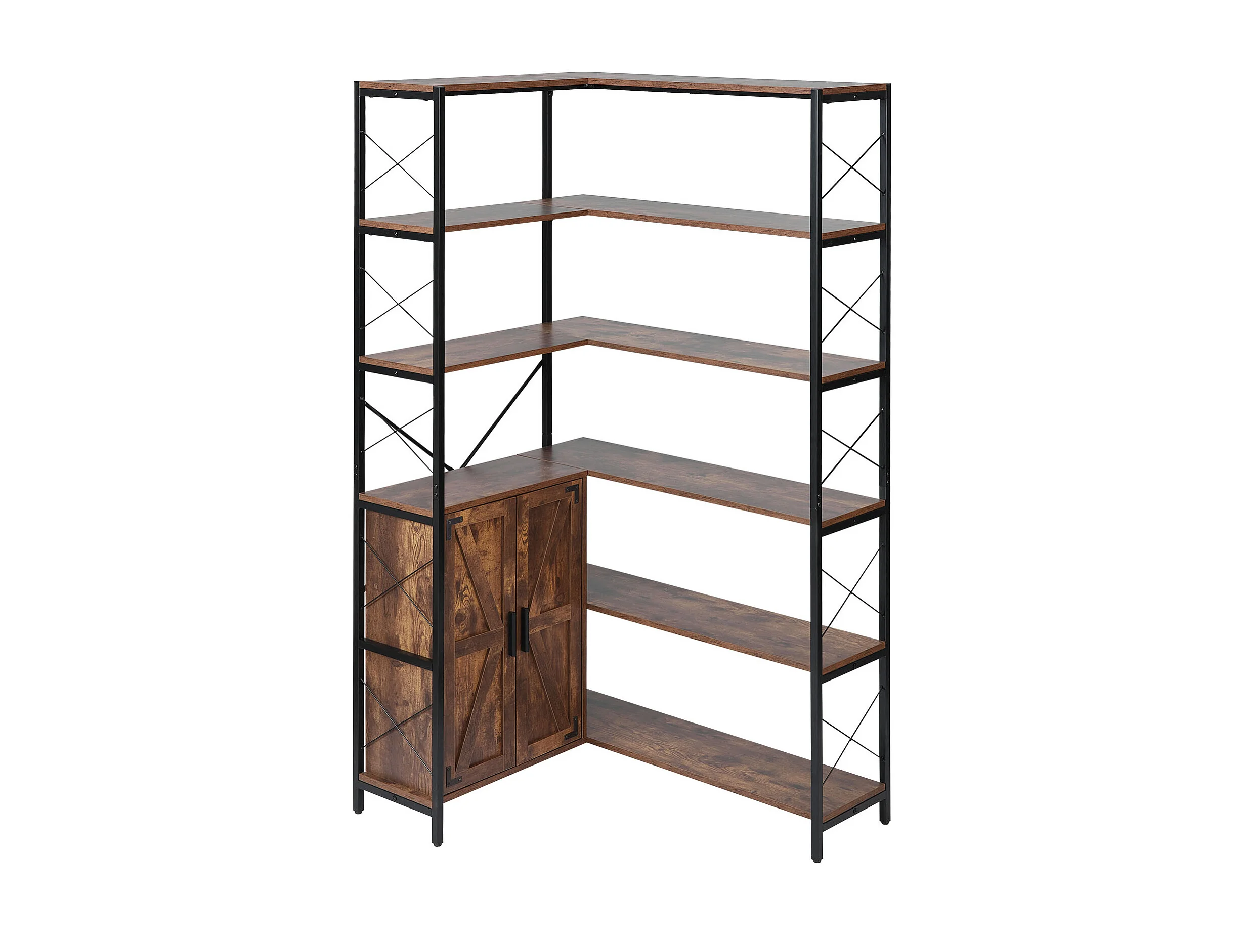 Étagère d'Angle SucceBuy Bibliothèque d'Angle à 6 Niveaux avec Portes de Rangement, Grand Organiseur en L avec Cadre en Métal et Étagères Réglables
