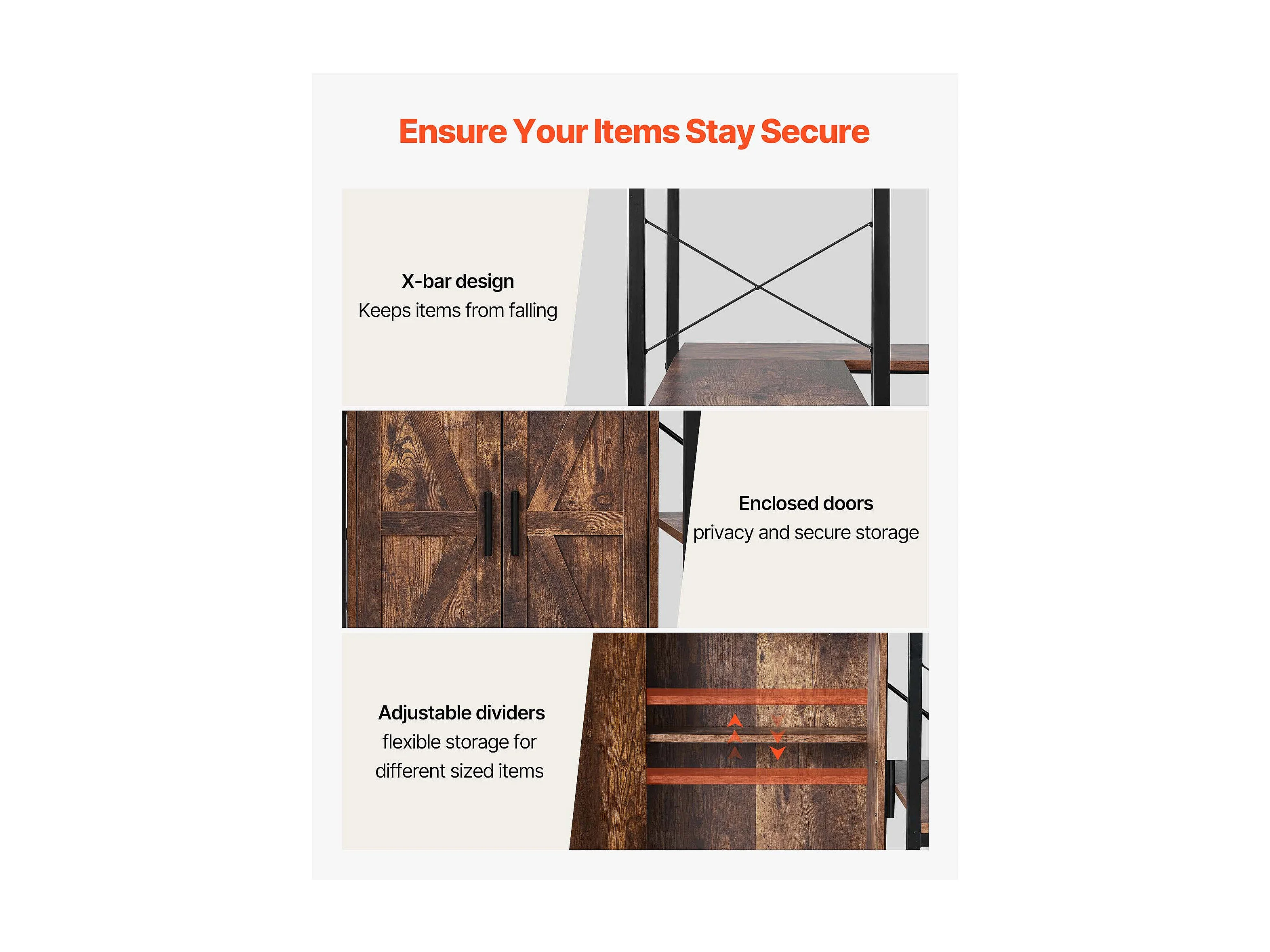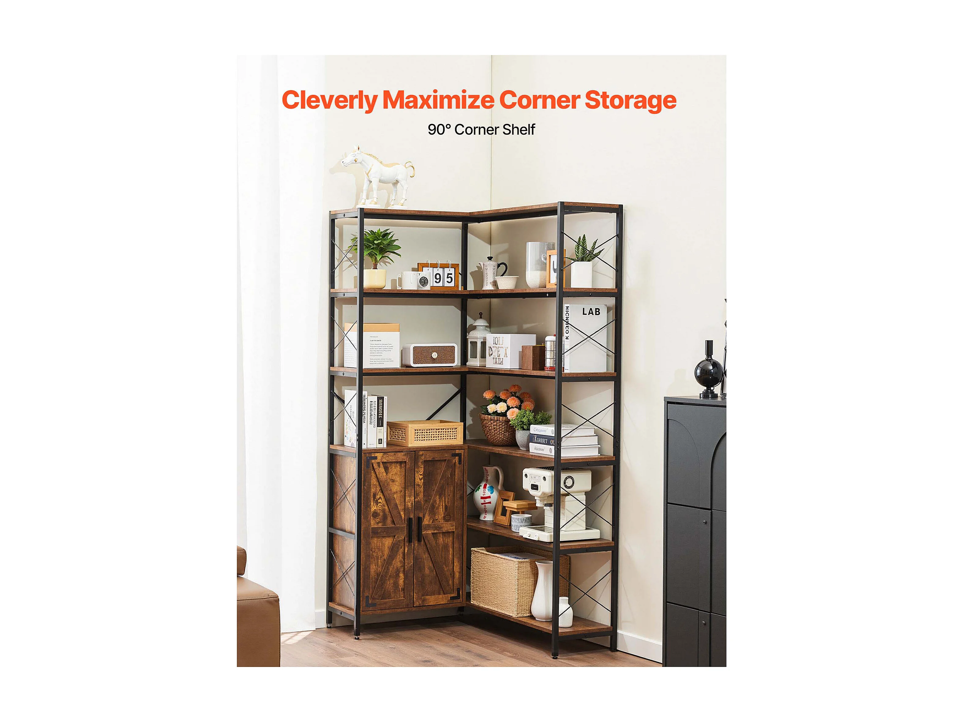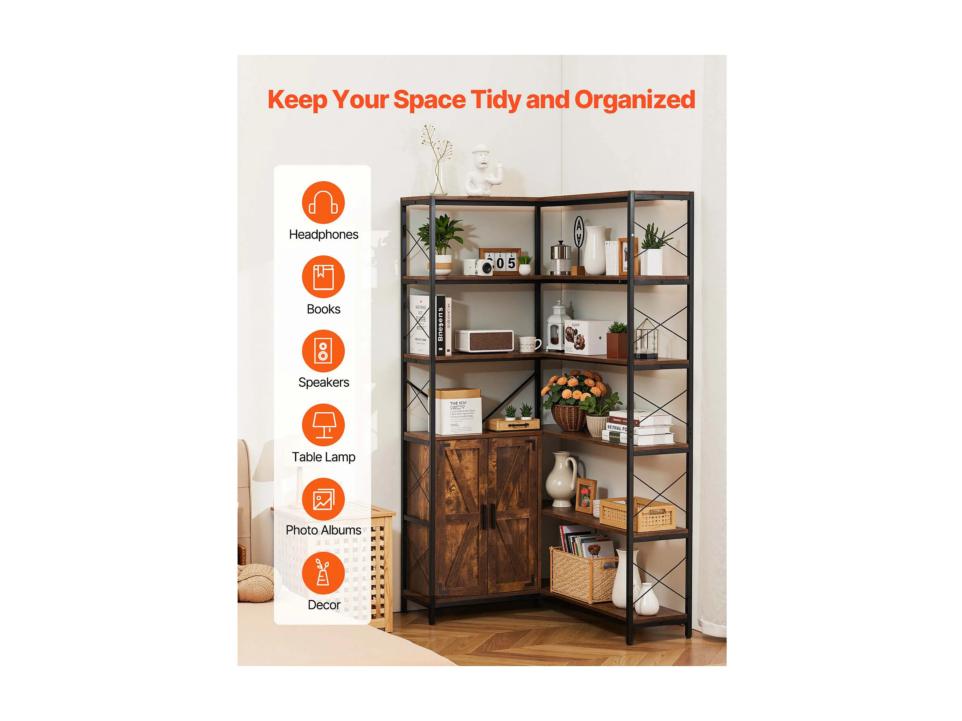 Étagère d'Angle SucceBuy Bibliothèque d'Angle à 6 Niveaux avec Portes de Rangement, Grand Organiseur en L avec Cadre en Métal et Étagères Réglables