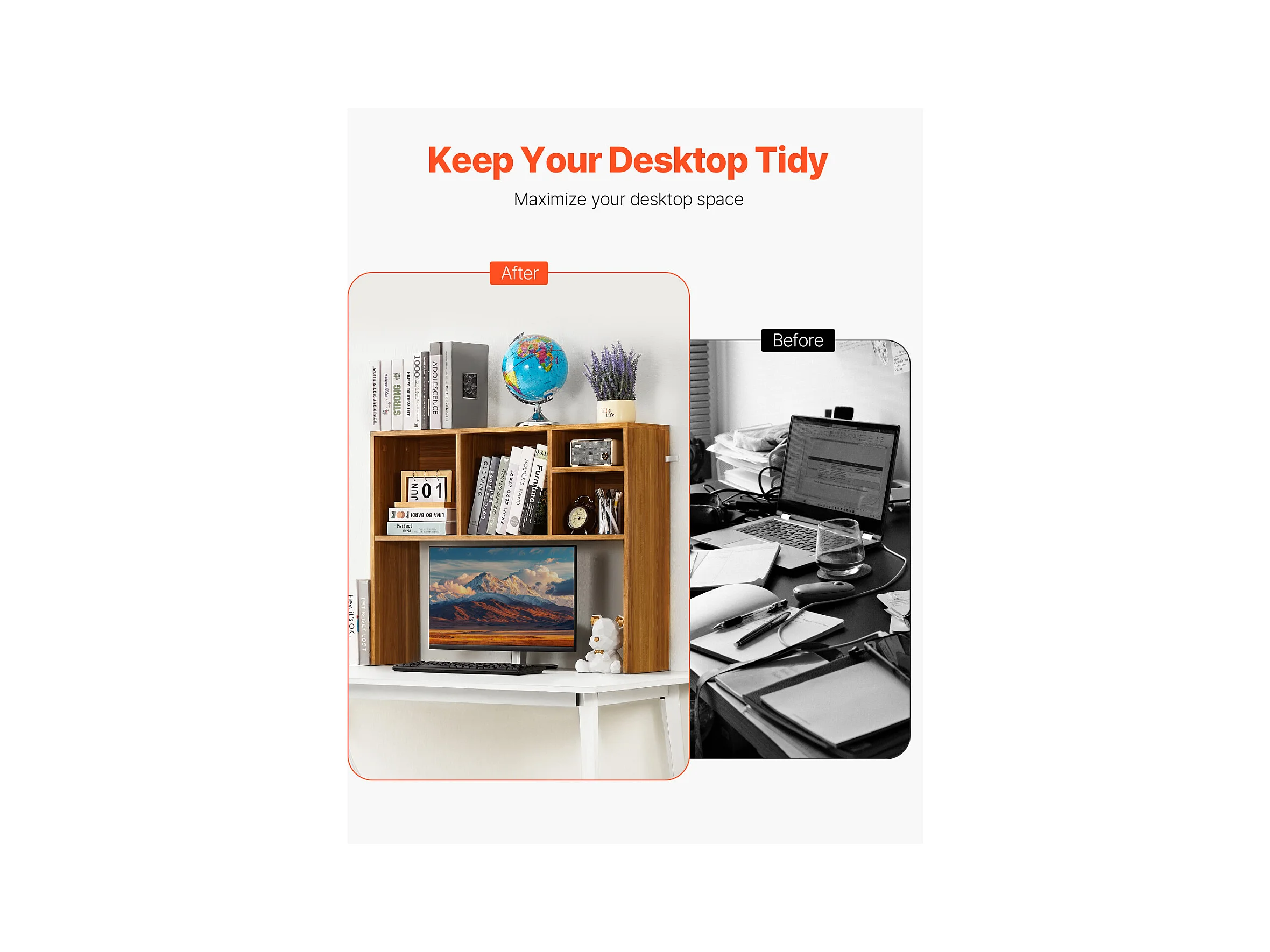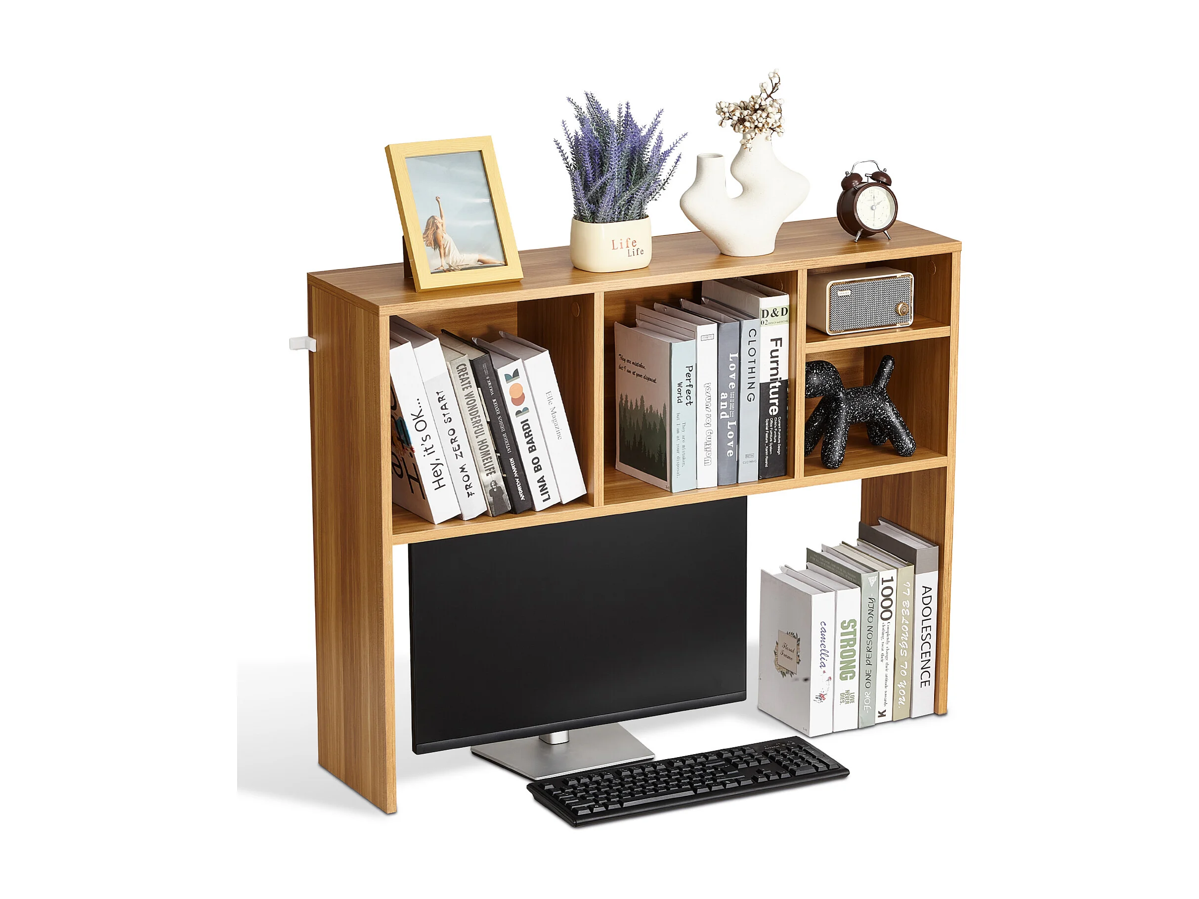 Étagère de Bureau SucceBuy en Bois à 2 Niveaux Organisateur de Rangement pour le Bureau et la Maison