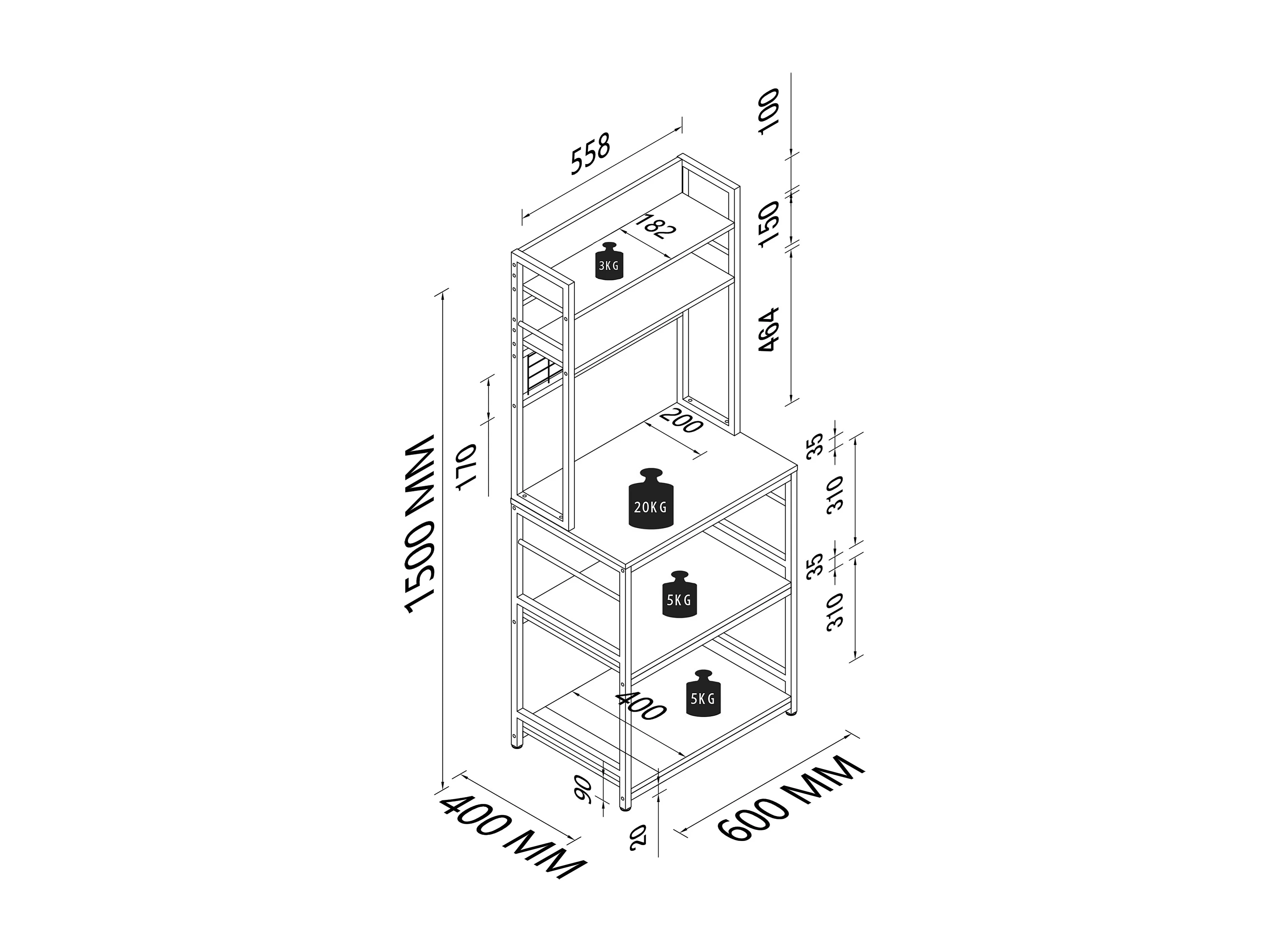 Kitchen furniture cabinet Esilo White / Sonoma oak H. 207 x W. 60 x D. 57 cm