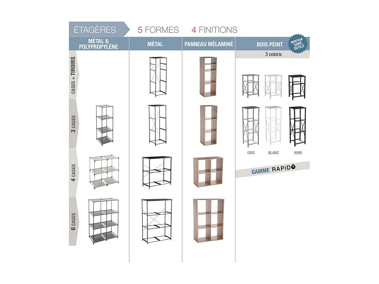 Meuble Étagère 4 cases de rangement effet bois naturel H 100.5 cm
