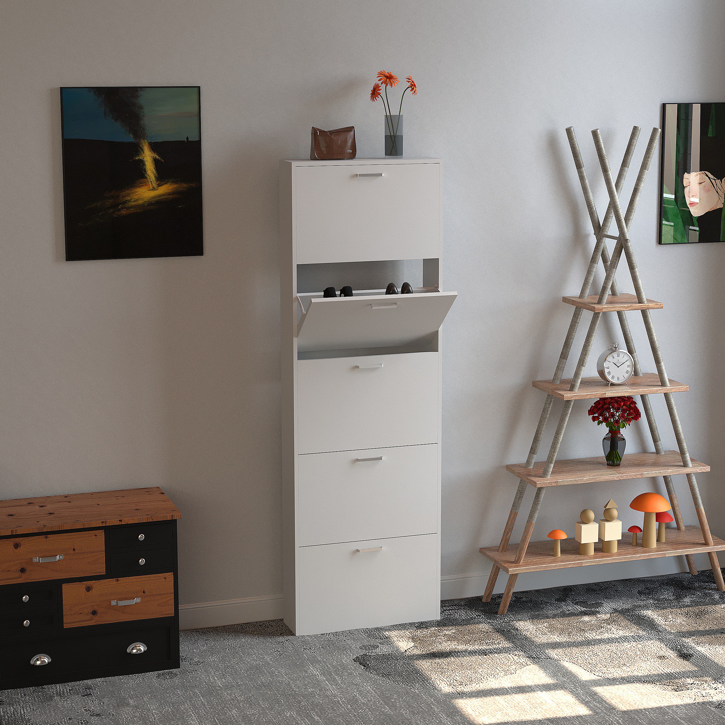 Shoe cabinet Sulos White H. 179 x W. 59 x D. 17 cm