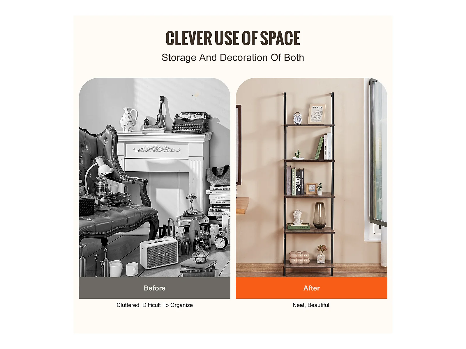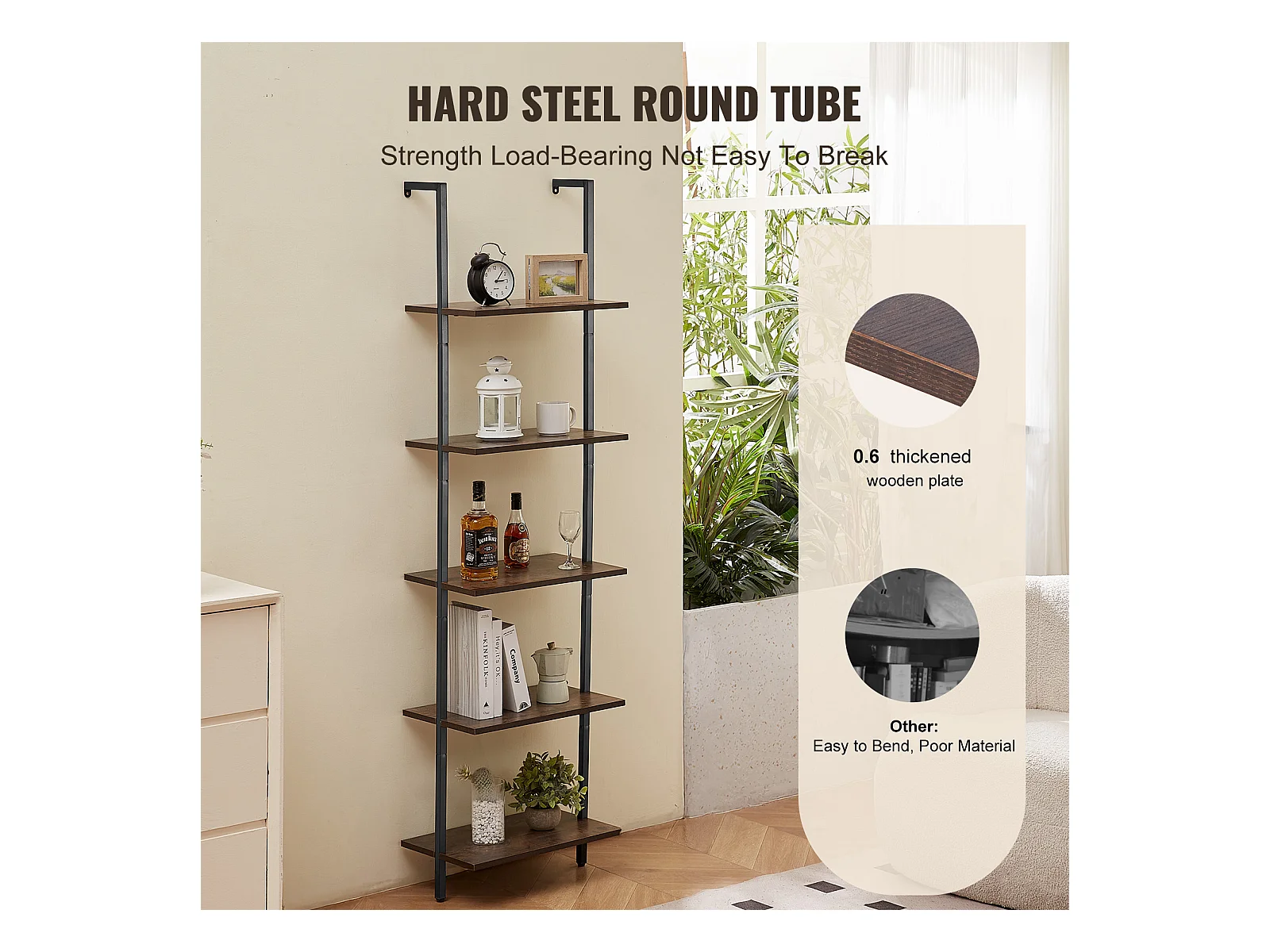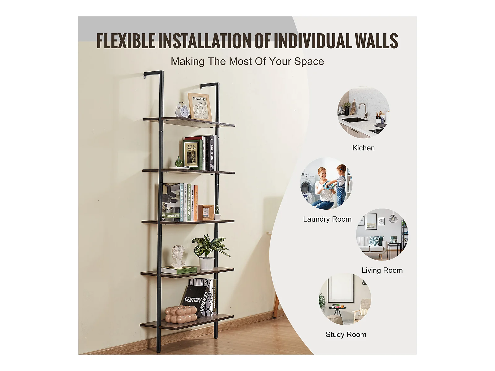 Étagère Mural Industrielle SucceBuy, 5 Niveaux,48x30 cm, Montage Mural, Bois Rustique, Rangement, Noir