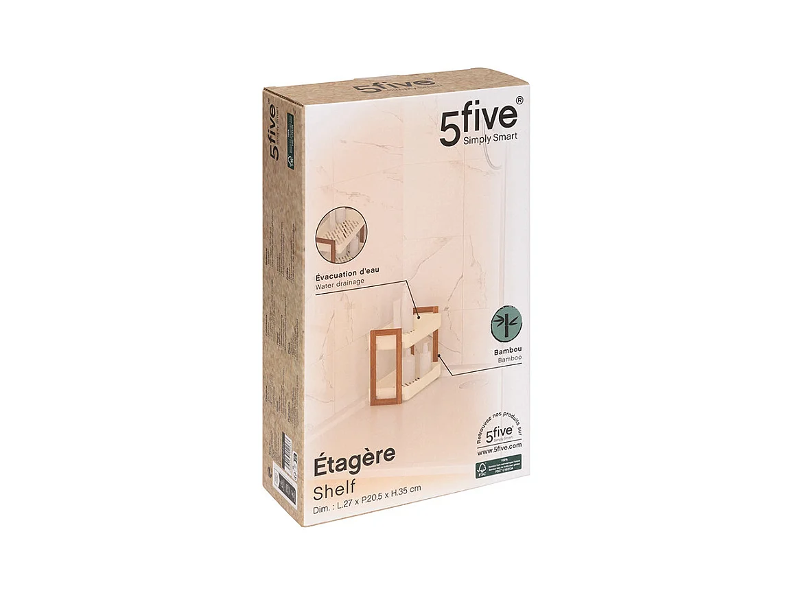 Etagère d'Angle de Douche "Ventouse" 26cm Naturel
